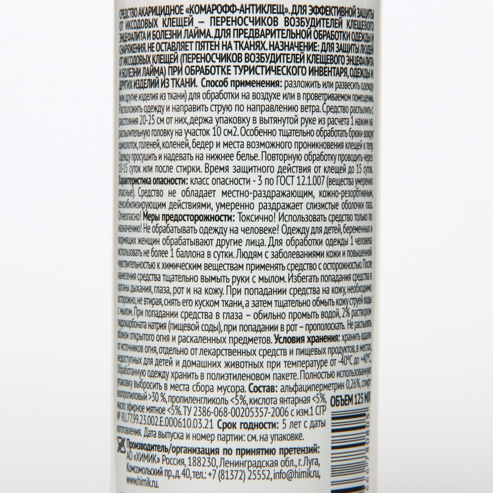 Спрей от укусов лесных и таежных клещей "комарофф", антиклещ, 125 мл