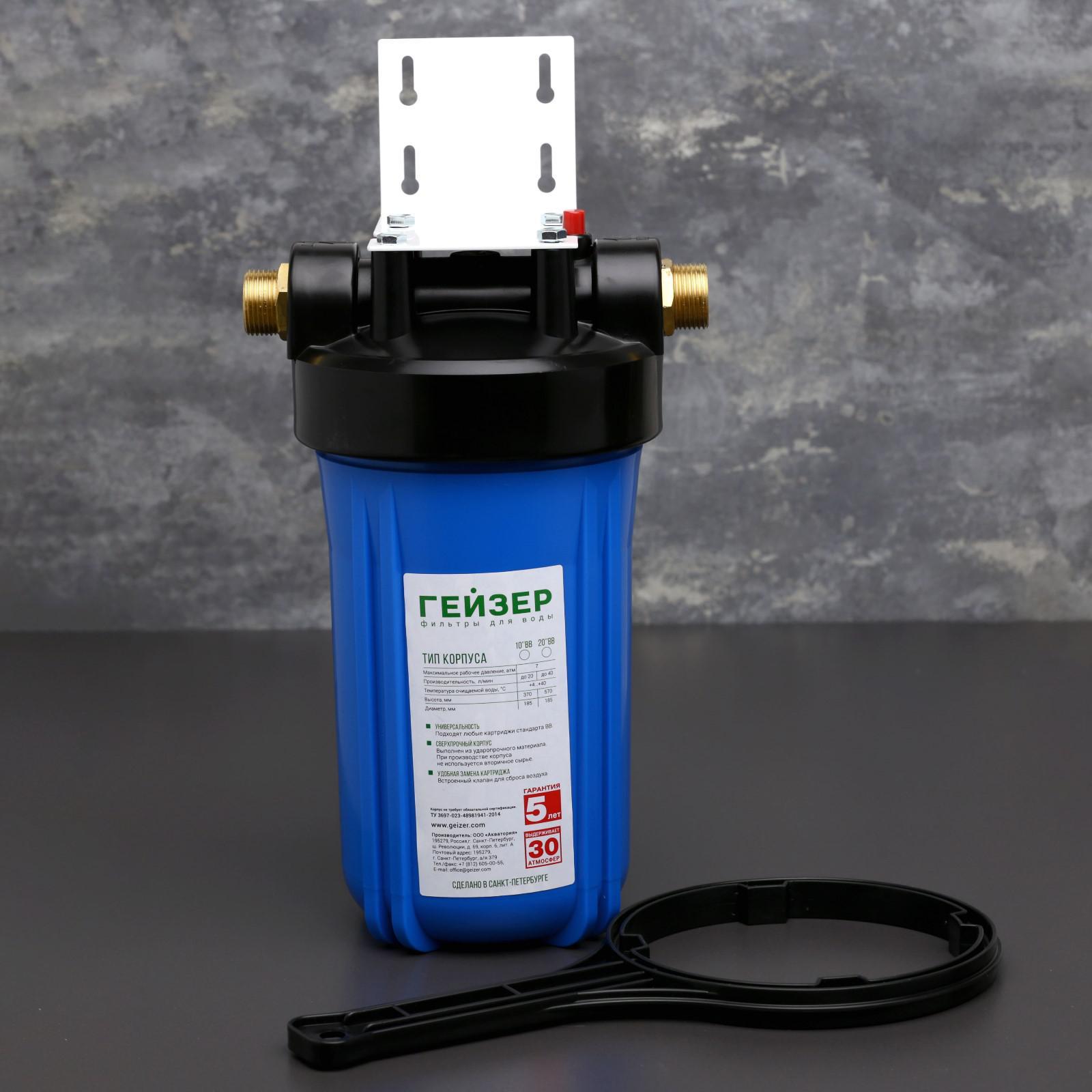 Система для фильтрации воды магистральная «гейзер-джамбо». Материал: Пластик Функция фильтра: Очистка от вредных примесей Тип фильтра: Система «под мойкой» Тип использования: Для холодной воды Температурное ограничение: Нет С краном для питьевой воды: Нет  развернуть описание ▼