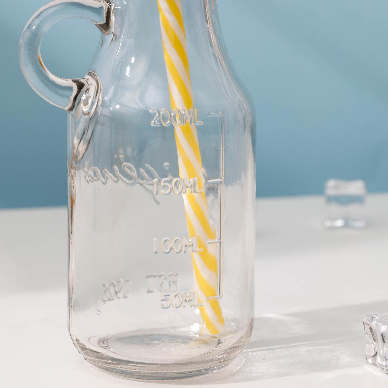 Бутыль стеклянная с крышкой и трубочкой, 200 мл, 7,5x6x14,5 см, цвет микс