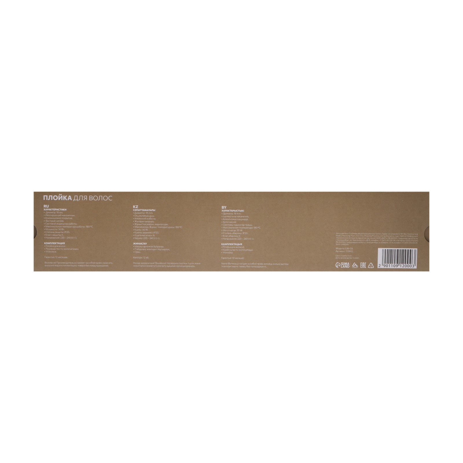 Плойка Luazon Lw-03, 30 вт, алюминиевое покрытие, D=16 мм, 180°с, черная