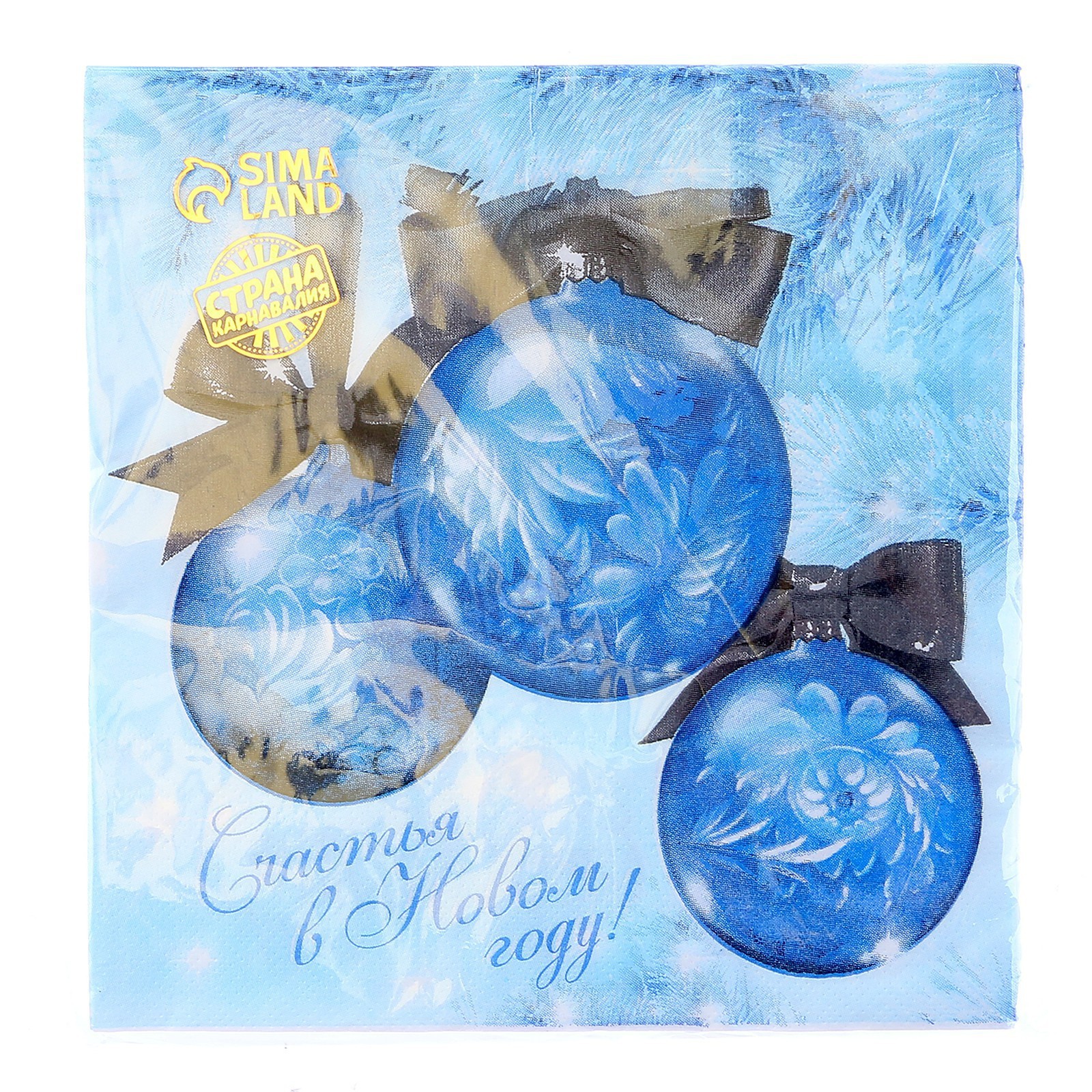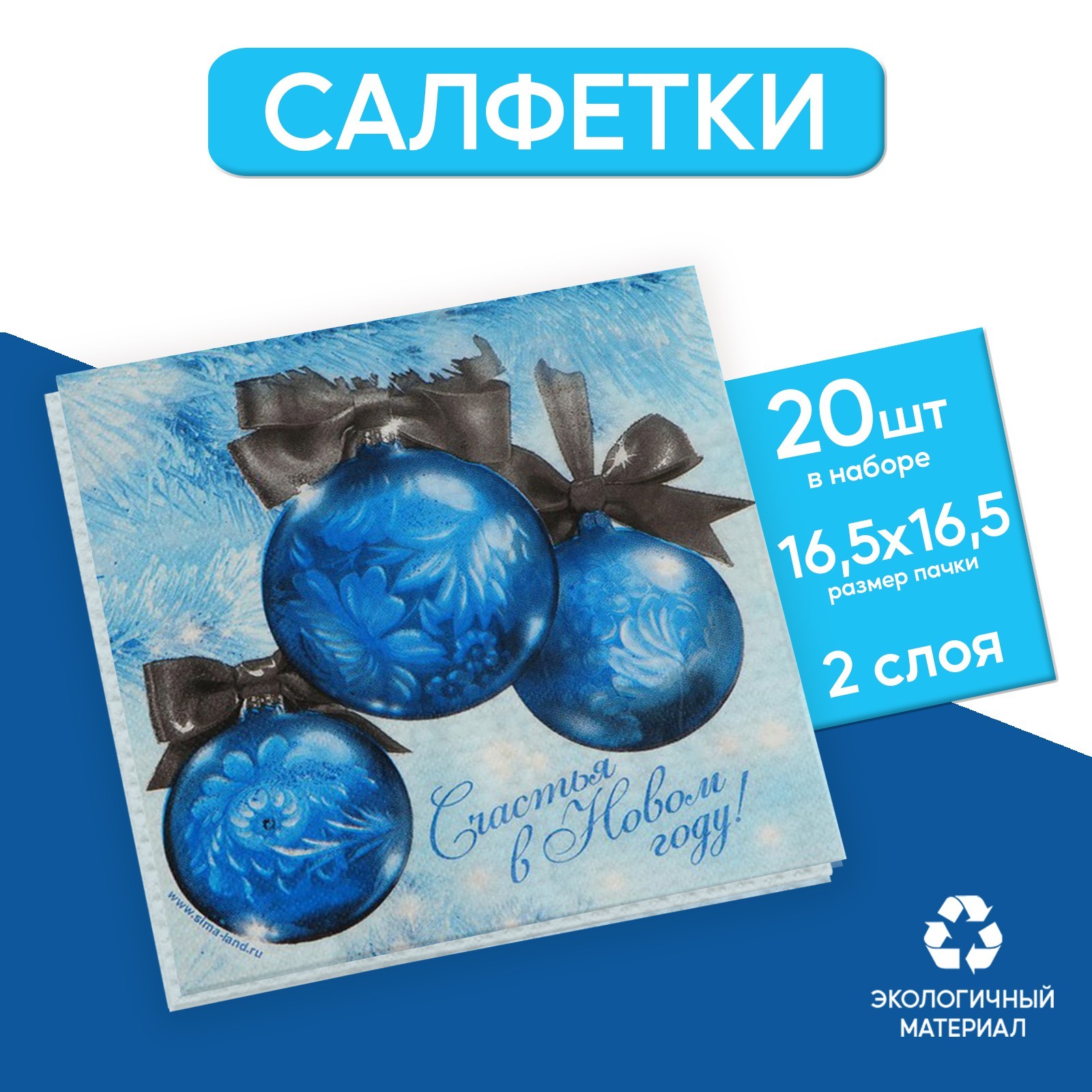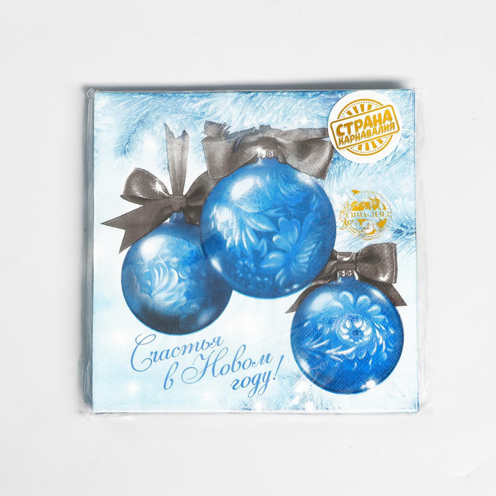 Салфетки бумажные «счастья в новом году!», двухслойные, шарики, 33х33 см, новогодний набор 20 шт.