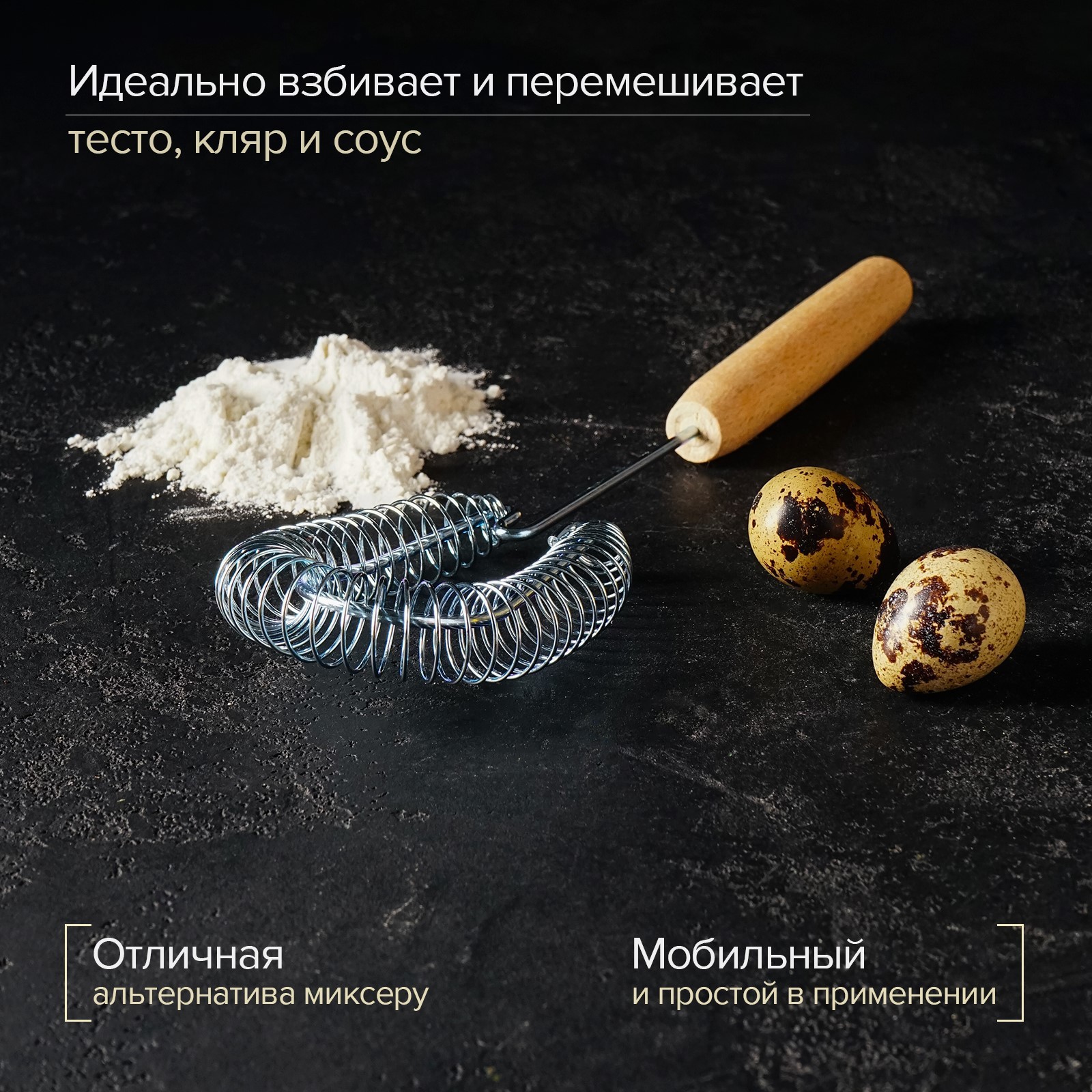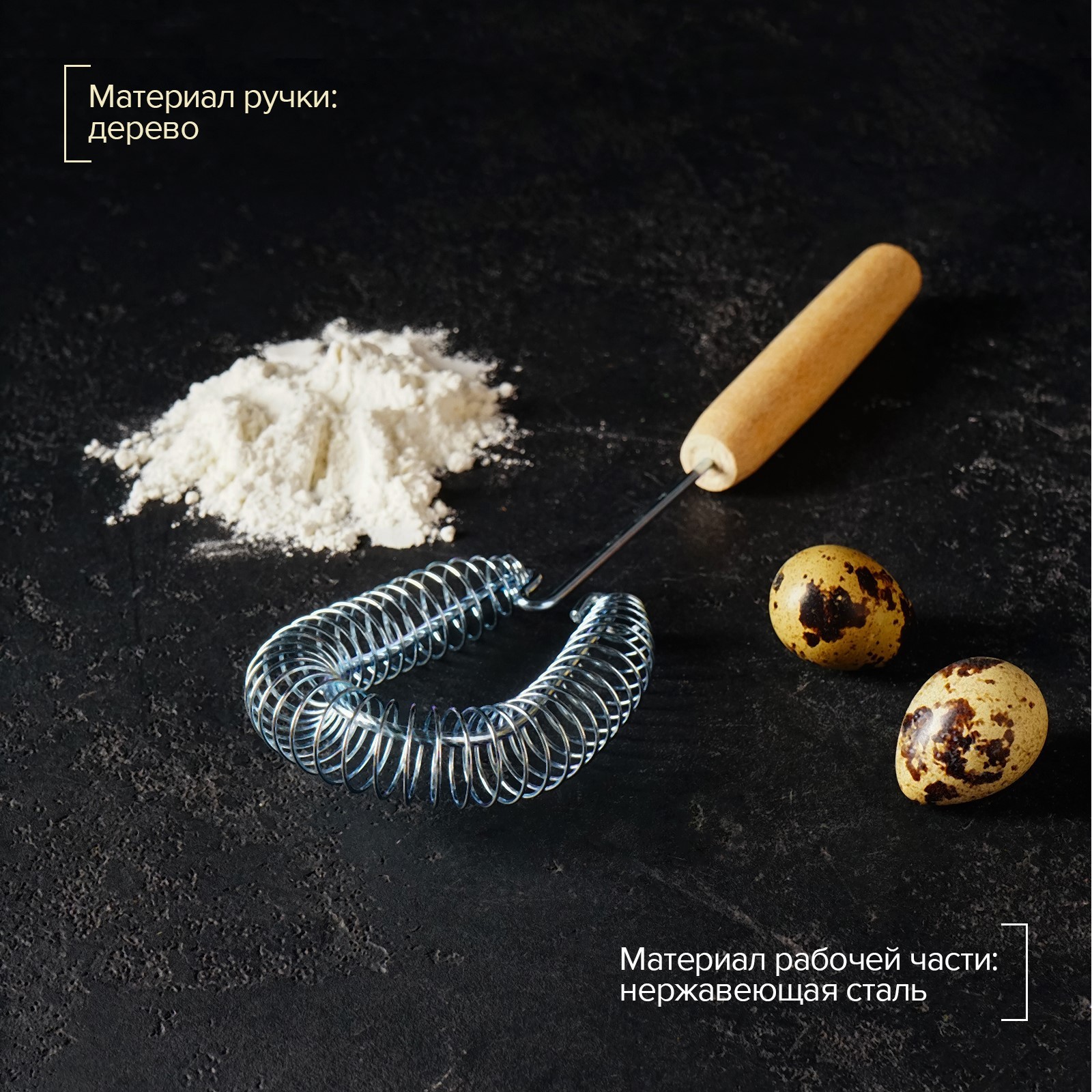 Венчик для взбивания с деревянной ручкой «пружина», 28 х 7,5 х 2 см