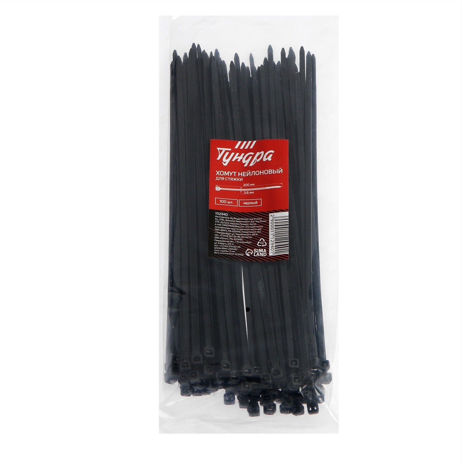 Хомут нейлоновый для стяжки, тундра, 3.6 200 мм, черный, 100 шт.