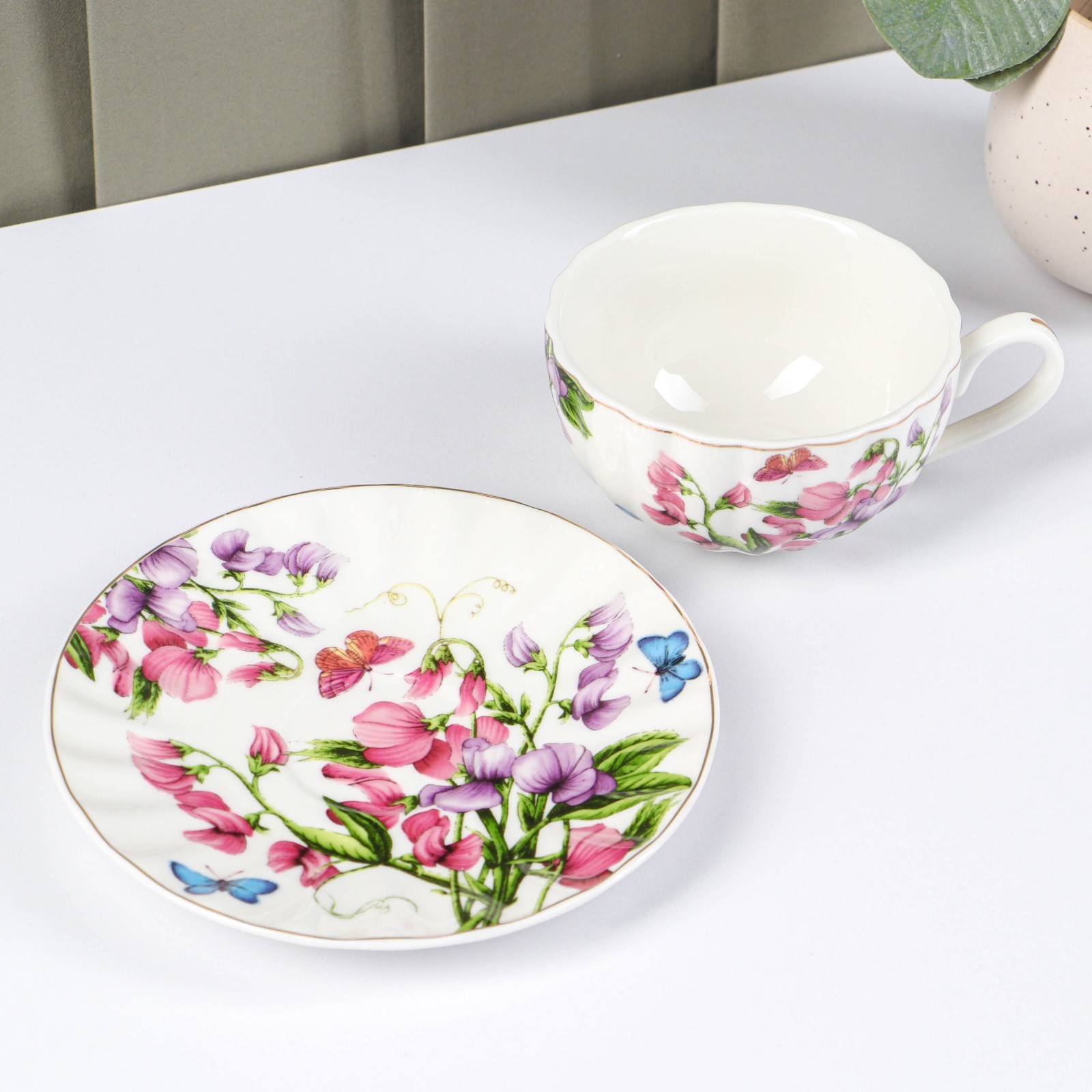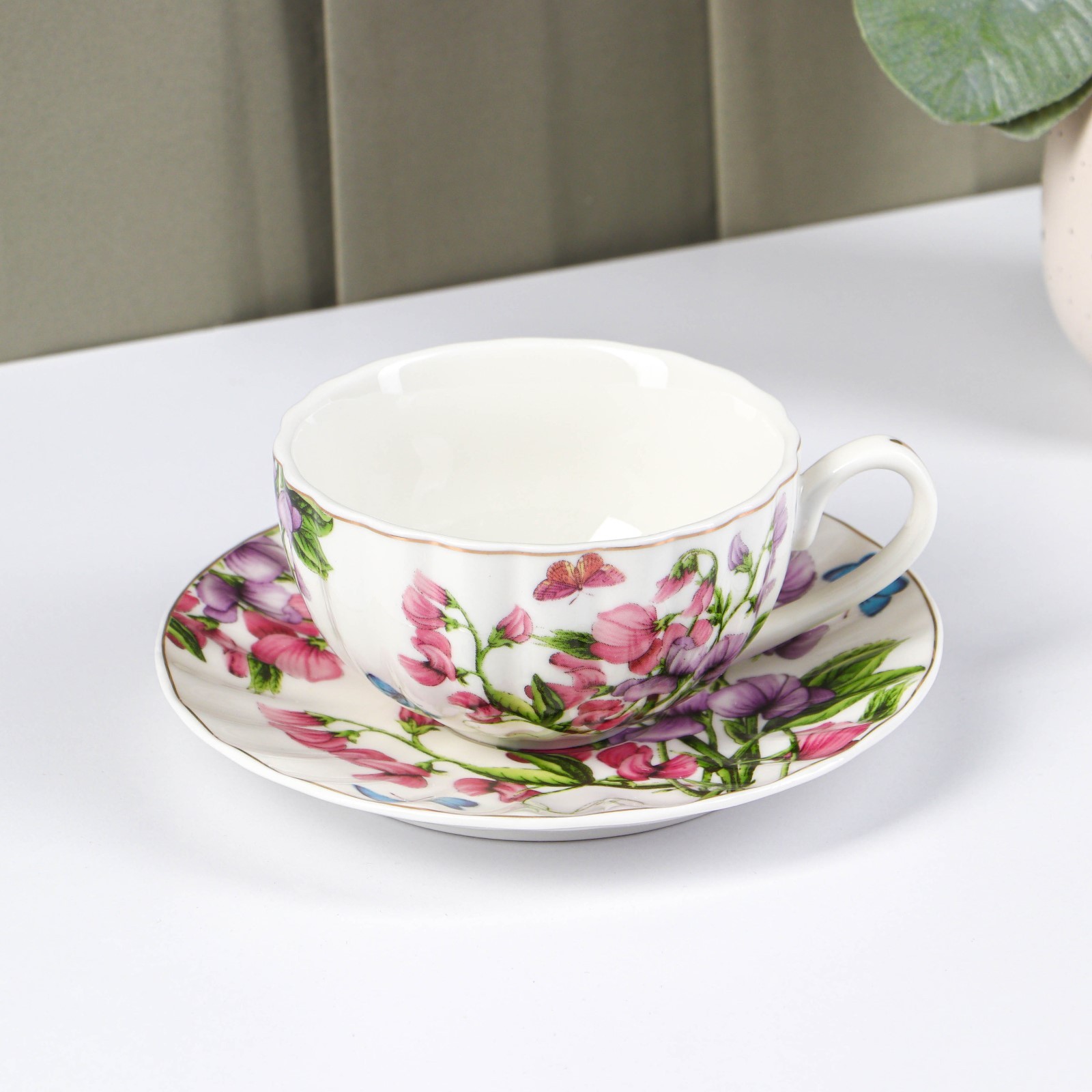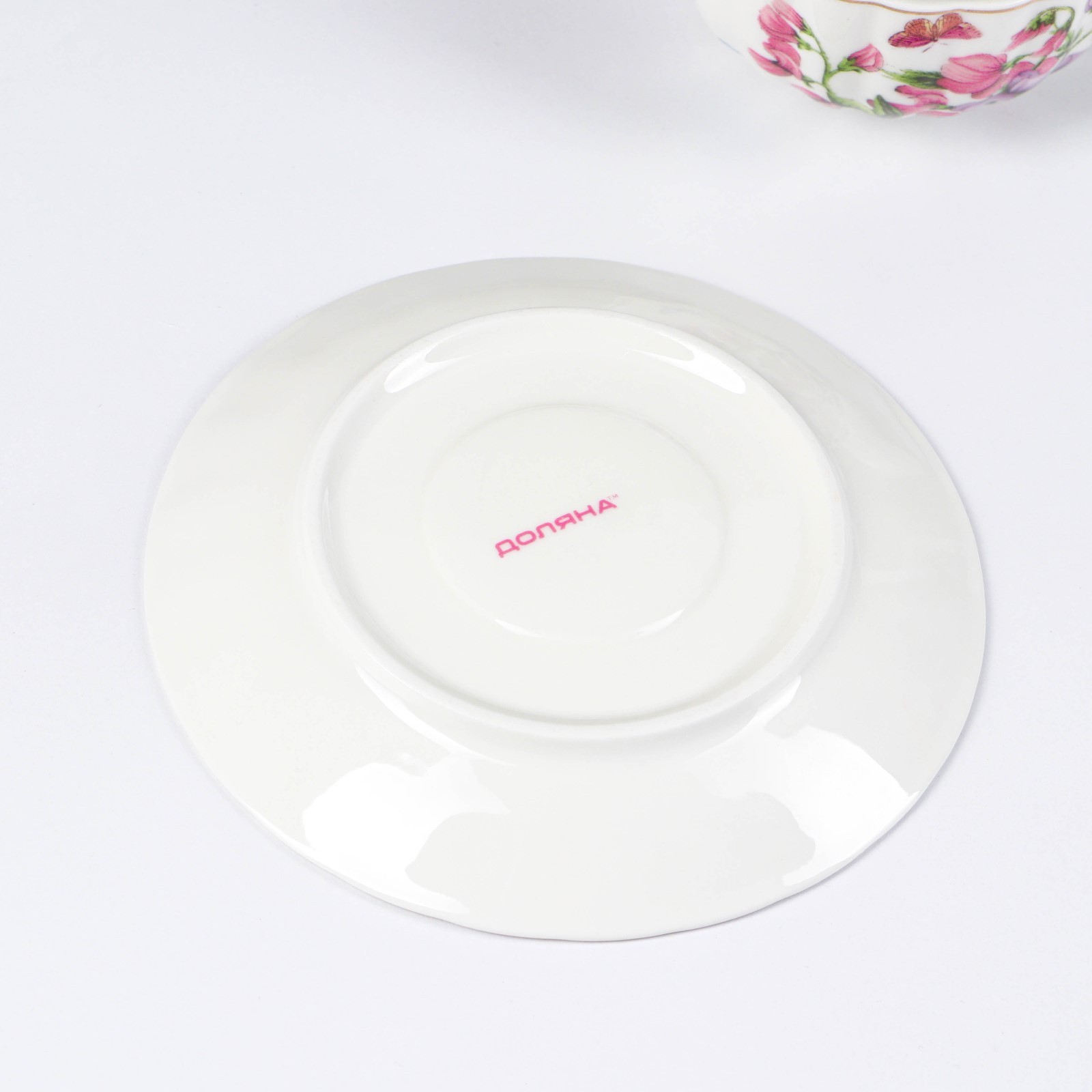 Чайная пара керамическая доляна «колокольчики», 2 предмета: чашка 250 мл, блюдце D=15 см, цвет белый
