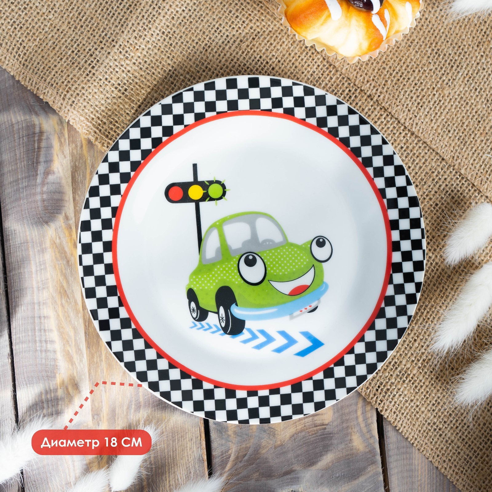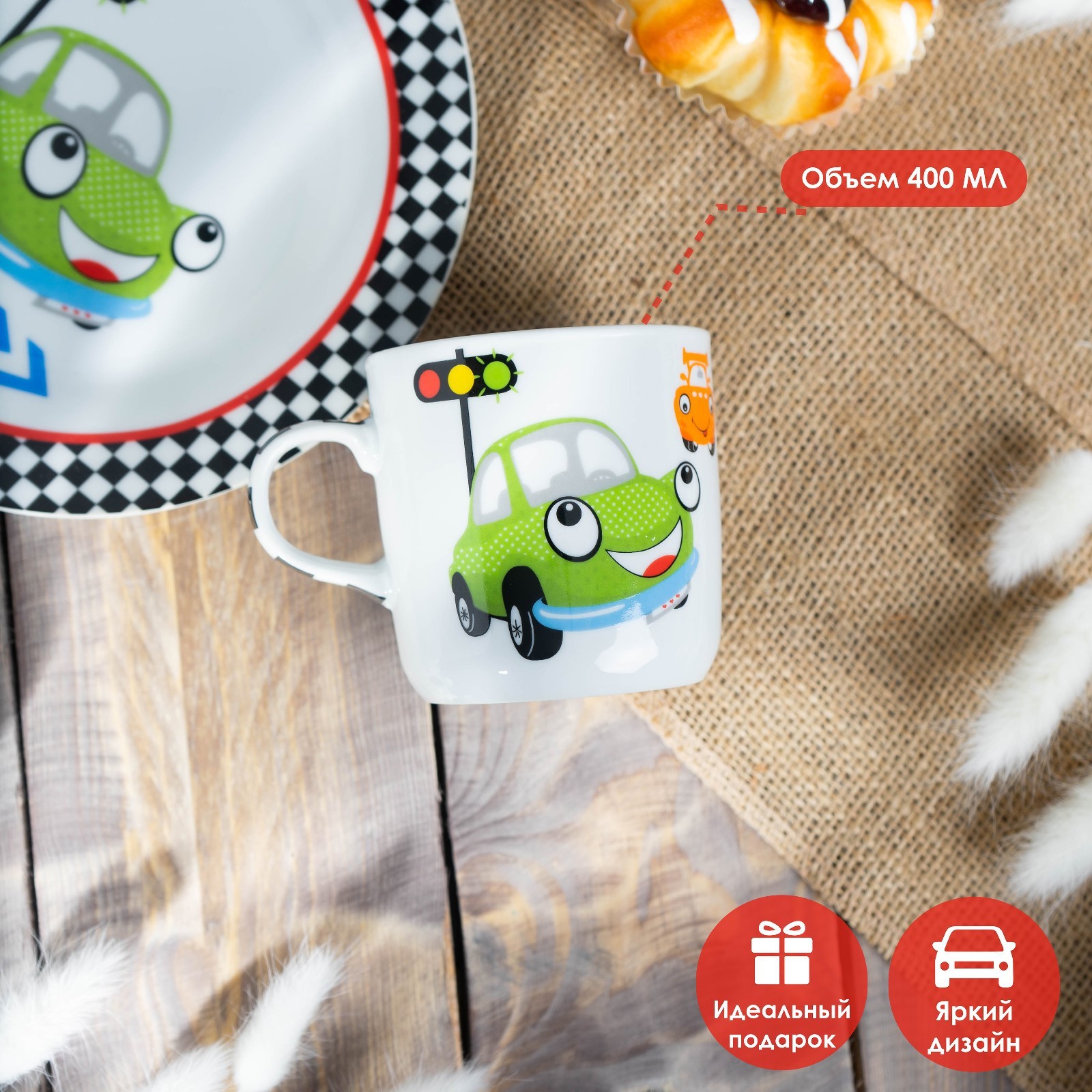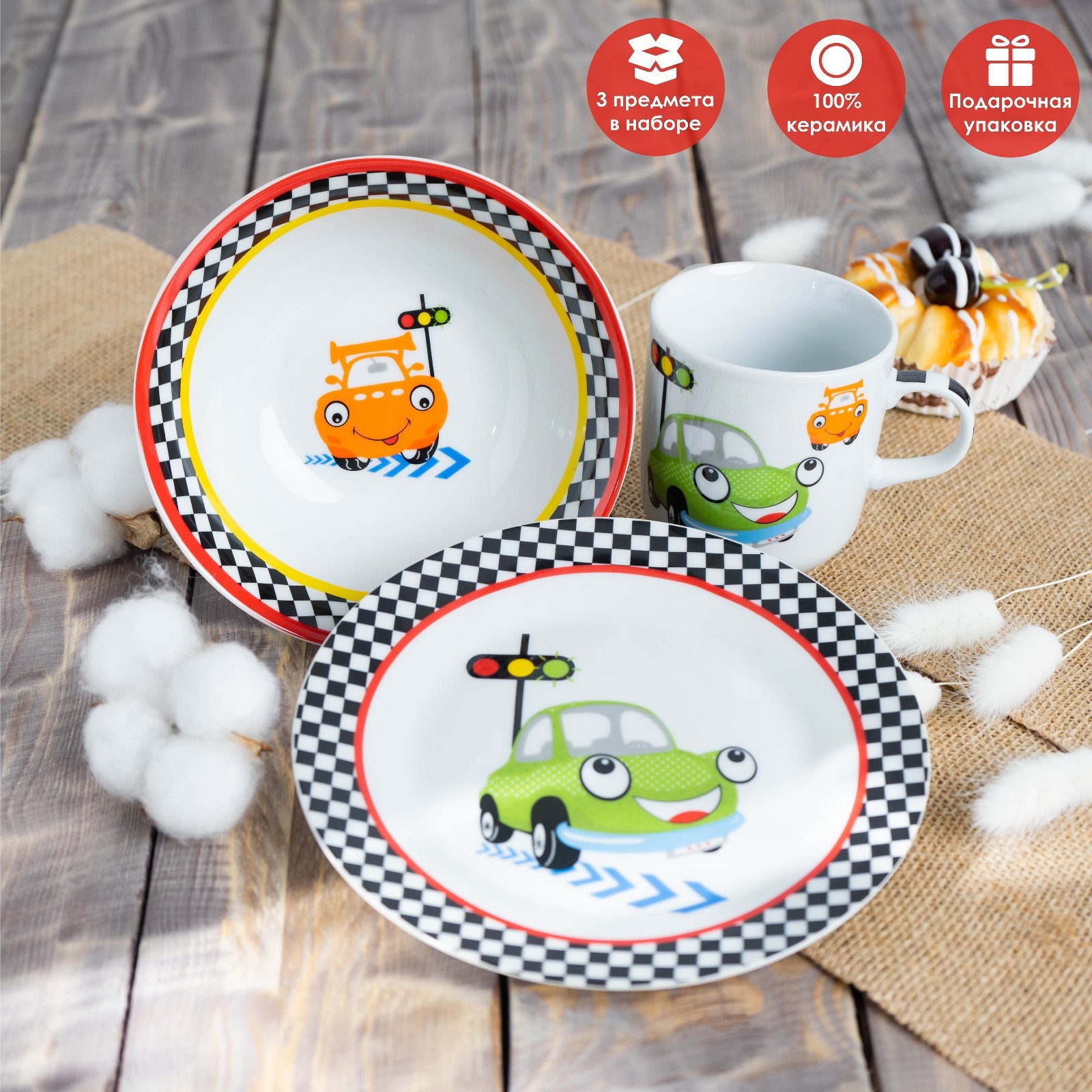 Набор детской посуды из керамики доляна «светофор», 3 предмета: кружка 230 мл, миска 400 мл, тарелка D=18 см