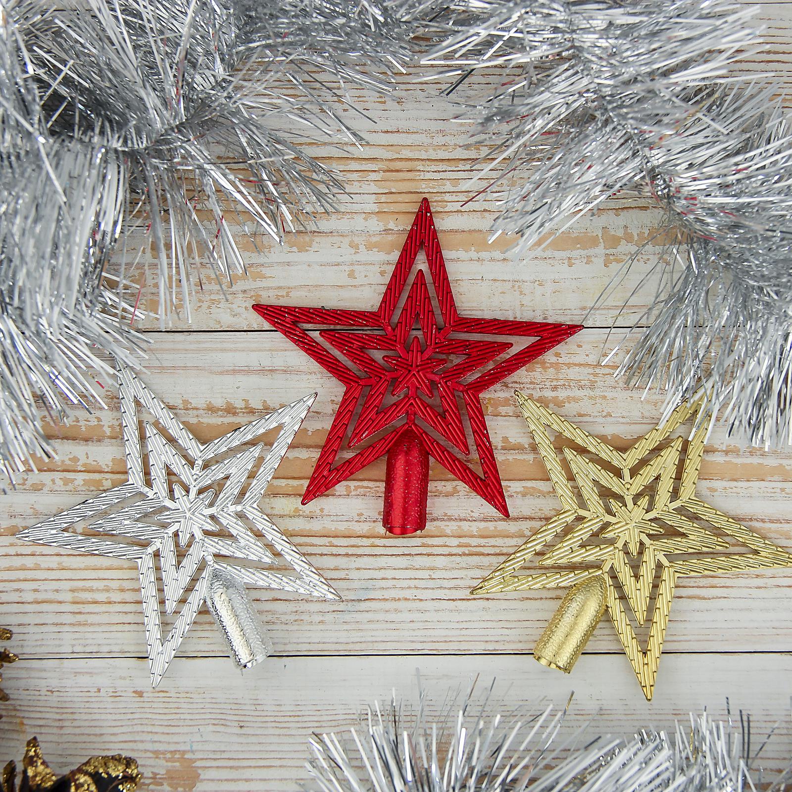Звезда на ёлку (верхушка) набор 3 шт., текстурная, 9 9 см, микс