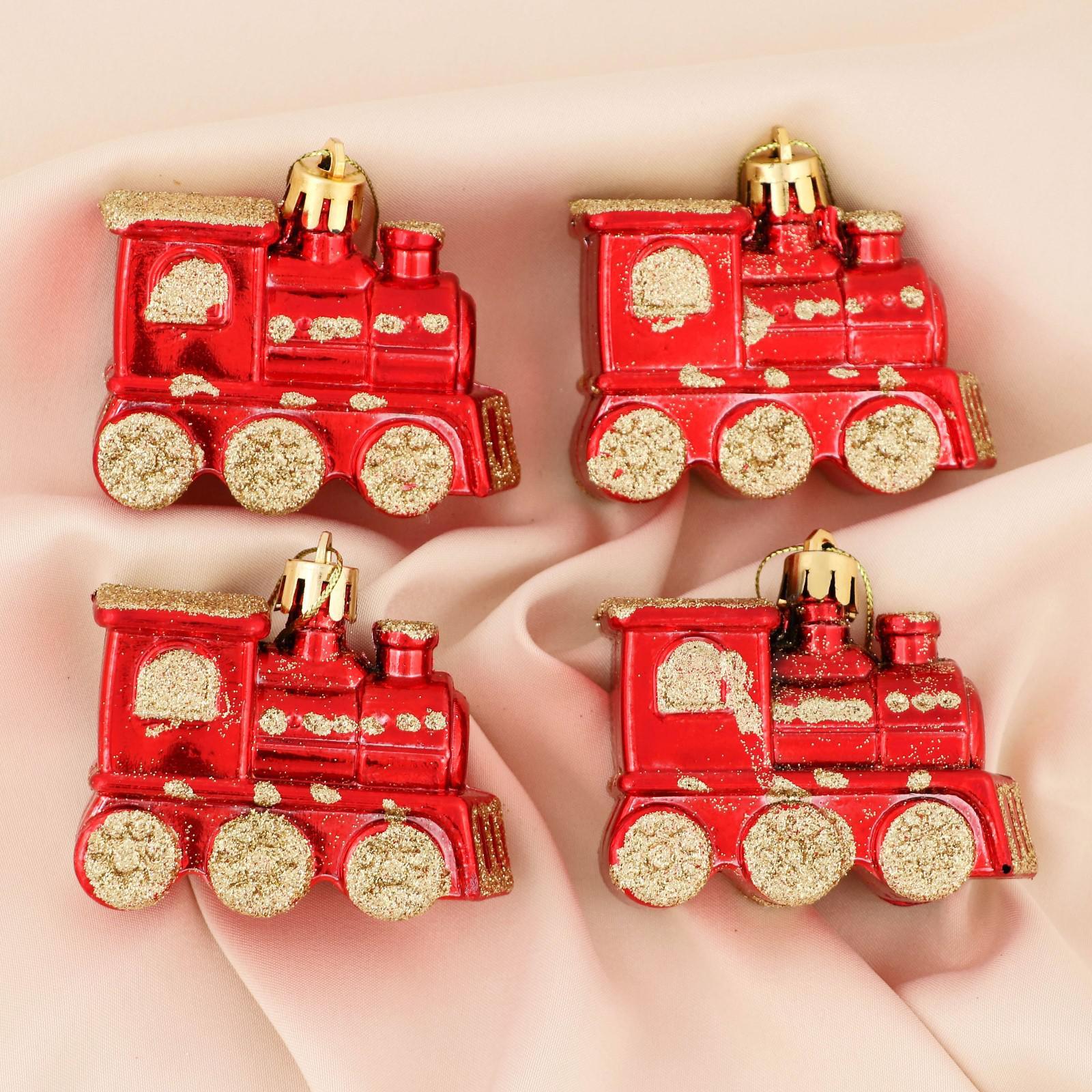Ёлочные игрушки 4 шт. «паровозик», 6.5 4.5 см, красно-золотой