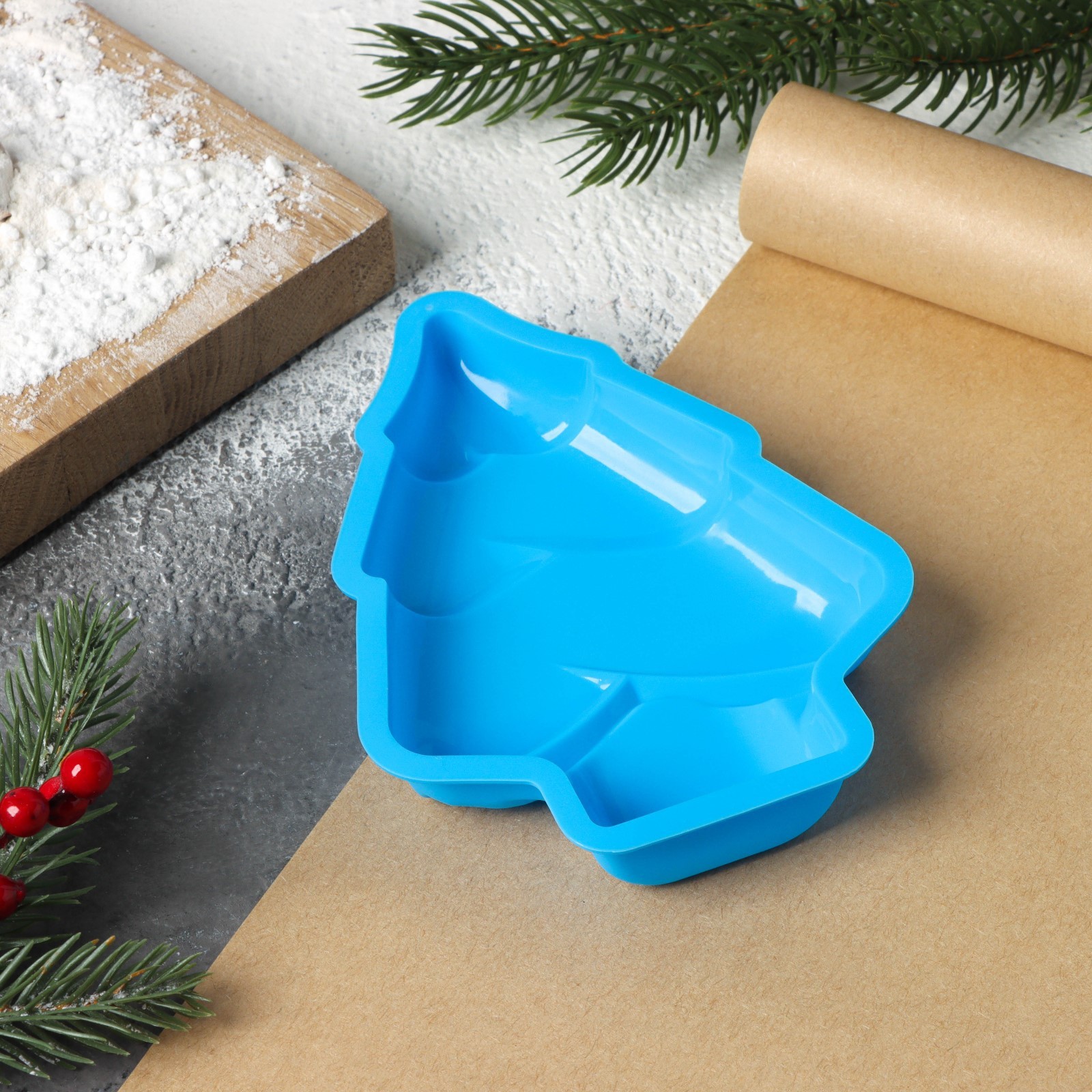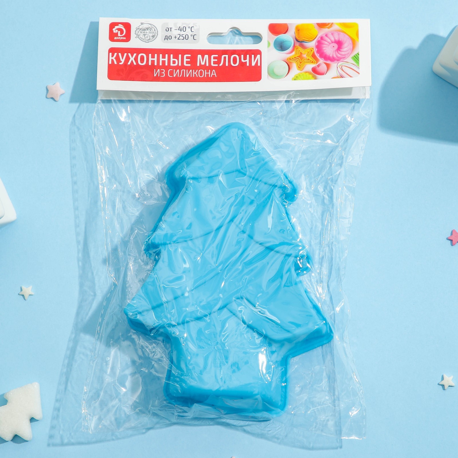Форма силиконовая для выпечки доляна «ёлочка», 13x10 см, цвет синий. Силиконовая форма подойдёт для приготовления любых блюд. Изделие обладает антипригарными свойствами, за счёт чего выпечка легко вынимается и не пригорает. Форма не прихотлива, её легко мыть и удобно хранить, выдерживает температуру –40. . . +230°С. Она не вступает в химическую реакцию с продуктами и не выделяет вредных веществ. Используйте форму в духовых шкафах, микроволновых печах и аэрогрилях. Главное, избегайте контакта с открытым огнём. Цвет: Синий Форма: Фигурная Фасовка, шт.: 1 Количество ячеек: 1 Крышка: Нет Материал: Силикон Тип покрытия: Без покрытия Ячейки: Нет Наличие палочек для форм: Нет Тип формы: Для печенья и пирожных Разъёмная форма: Нет Можно мыть в посудомоечной машине: Да  развернуть описание ▼