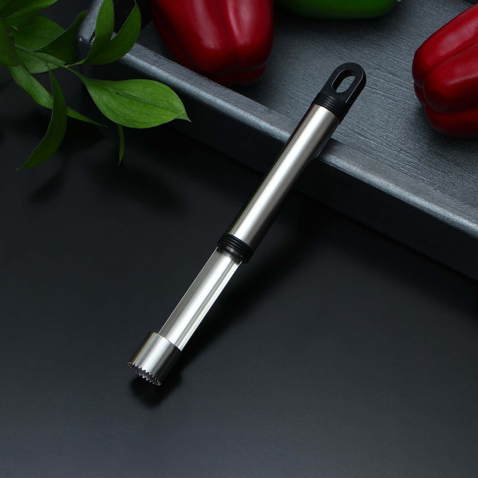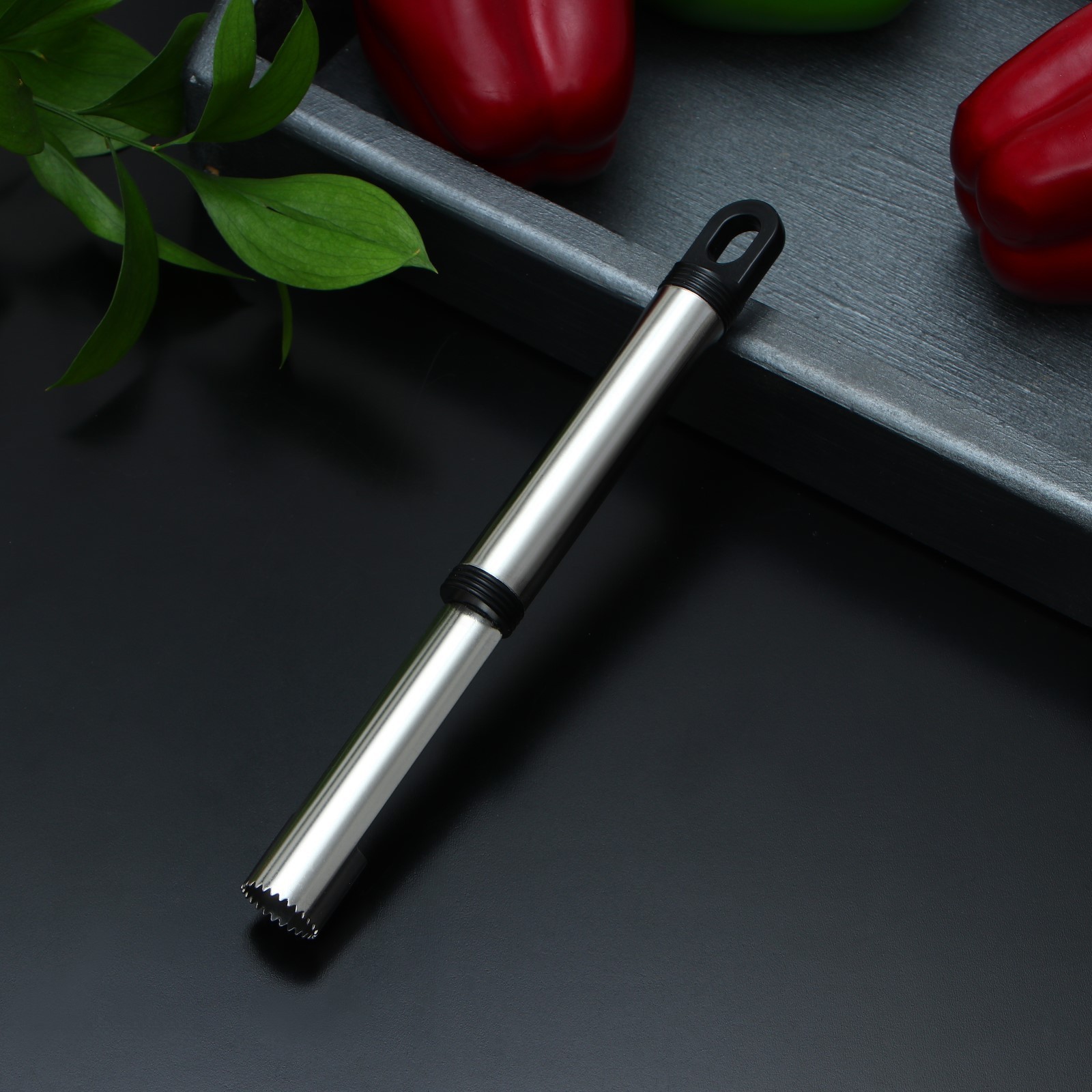 Нож для сердцевины доляна «помощник», 21 см, цвет чёрный. Нож для сердцевины – простой гаджет, который быстро избавит плод от косточек и плодоножки, оставив в центре аккуратное отверстие цилиндрической формы. Изделие имеет удобную ручку, которая не скользит в руке. Безопасное приспособление значительно облегчит процесс нарезки фруктов. Важно, что после такой процедуры яблоки и груши сохранят свой привлекательный внешний вид! Рекомендации по использованию: Разместите нож на поверхности плода над «хвостиком» в вертикальном положении. Надавите на ручку ножа, избегая перекосов лезвия. Чтобы качественно удалить сердцевину, лезвие должно пройти насквозь фрукта. Вынимая режущую часть, прокручивайте ручку ножа, чтобы удалить оставшиеся элементы. Цвет: Чёрный Материал ручки: Металл Материал: Коррозионно-стойкая сталь  развернуть описание ▼