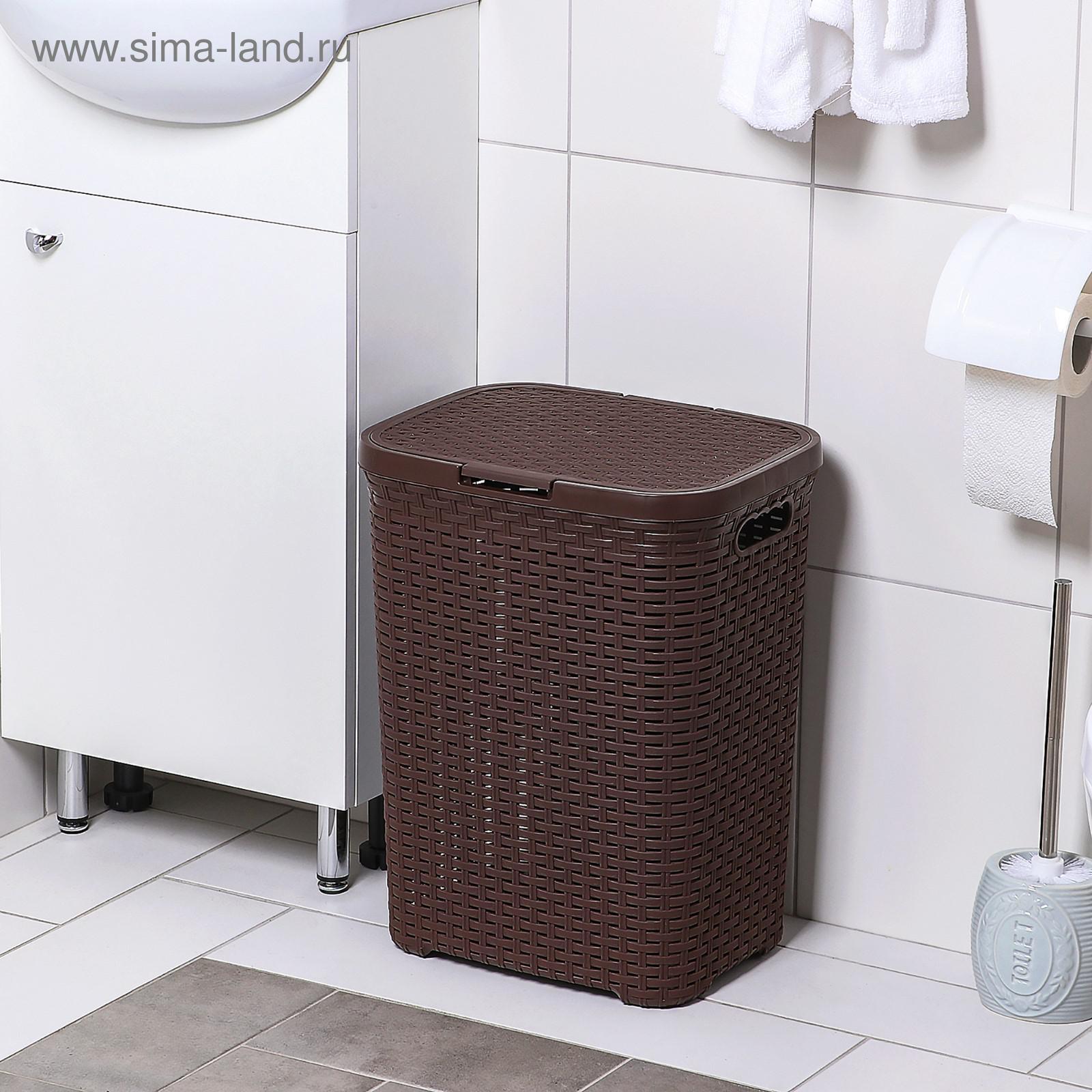 Корзина бельевая с крышкой «ротанг», 40 л, 37x29x48 см, цвет коричневый