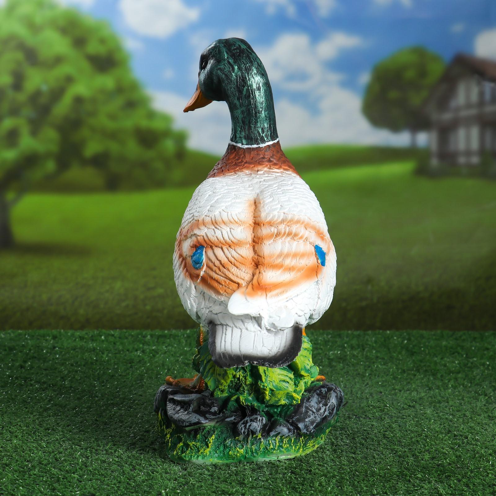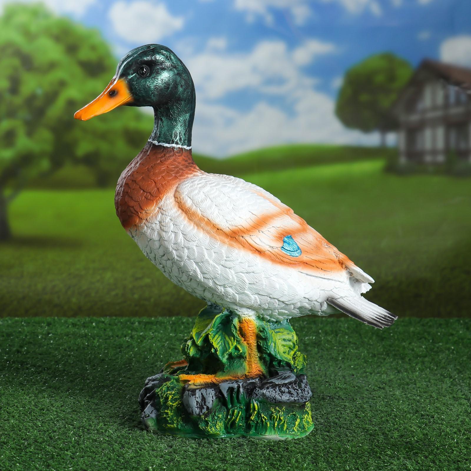 Садовая фигура из полистоуна «селезень», 35 29 18 см. Садовая фигура — это всегда стильное и яркое решение для ландшафтного декора, который добавит уюта и индивидуальности дачному участку, саду, огороду или клумбе. С ее помощью можно оформить вход на участок, разграничить пространство, разметить дорожку, создать тематическую атмосферу и превратить сад в единую композицию (узнать, как это сделать, можно в статье 5 причин использовать садовые фигуры на даче). Чтобы украшение радовало вас дольше, рекомендуем следовать Инструкции по уходу за садовыми фигурами. Цвет:Золотистый|Цвет:Разноцветный|Высота, см:35|Материал:Полистоун|Одноцветный:Нет|Можно оставлять зимой на улице:Да|Страна:Россия  развернуть описание ▼
