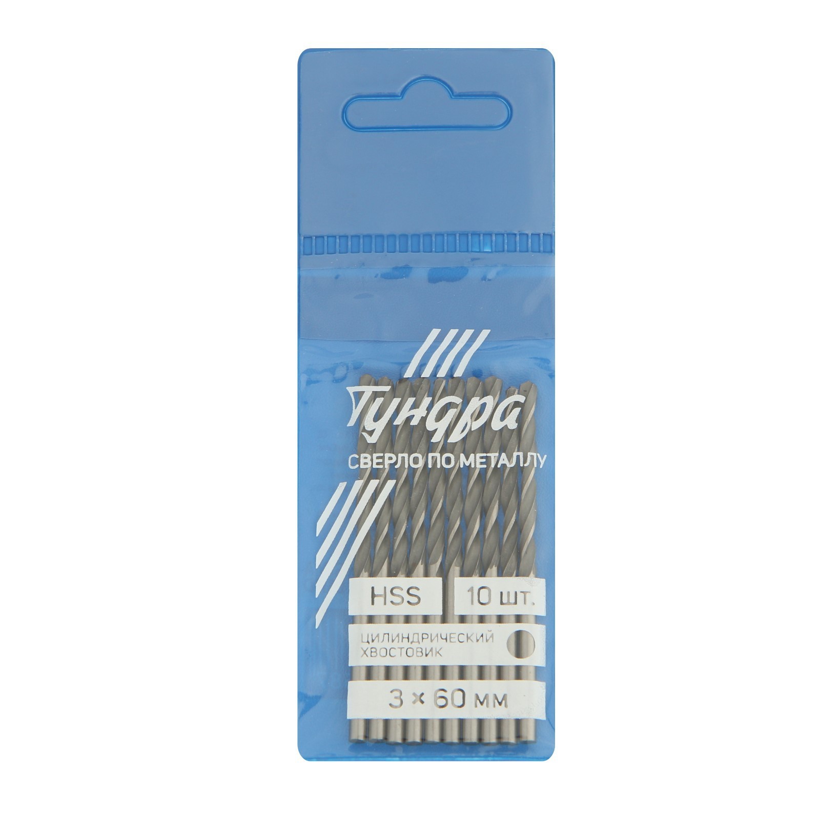 Сверло по металлу тундра, Hss, цилиндрический хвостовик, 3 60 мм, 10 шт.