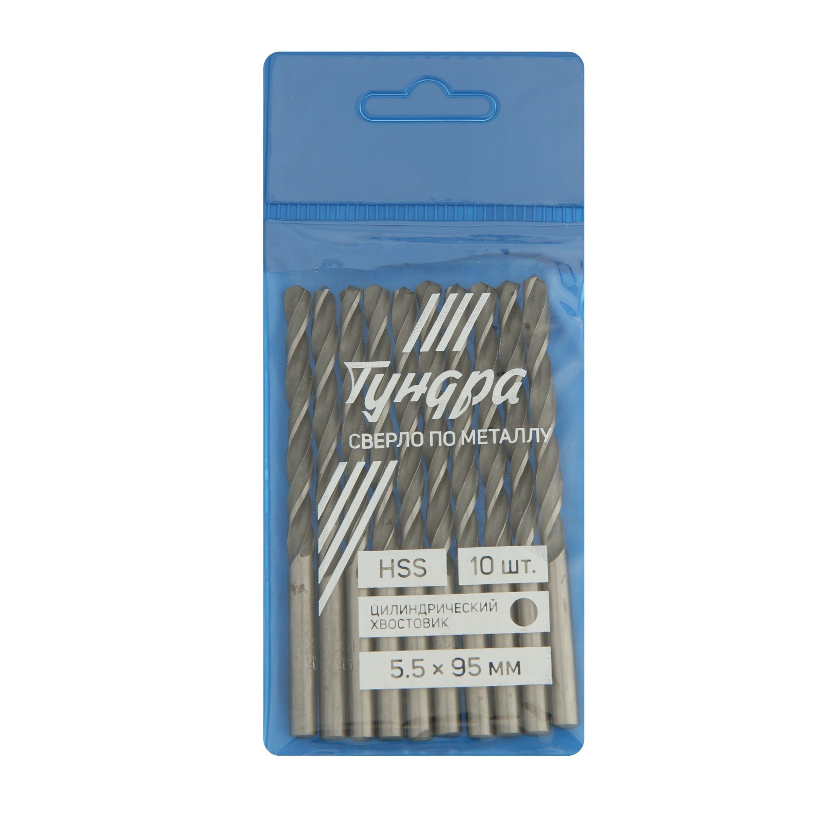 Сверло по металлу тундра, Hss, цилиндрический хвостовик, 5.5 95 мм, 10 шт.