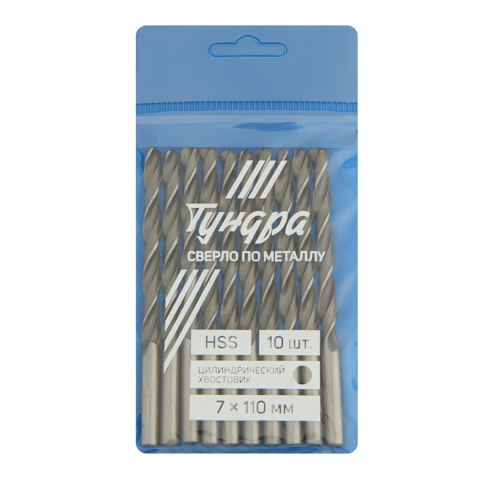 Сверло по металлу тундра, Hss, цилиндрический хвостовик, 7 110 мм, 10 шт.