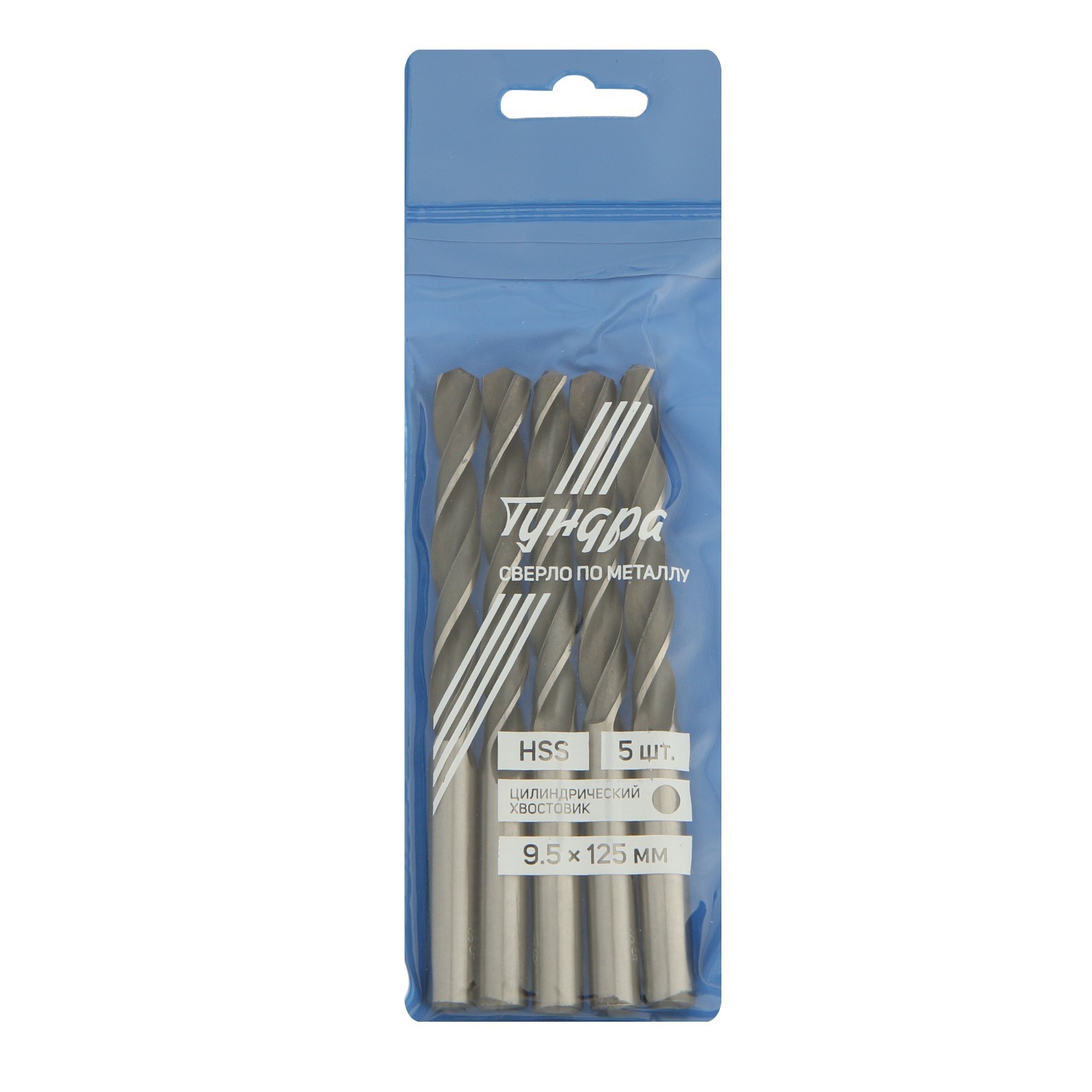 Сверло по металлу тундра, Hss, цилиндрический хвостовик, 9.5 125 мм, 5 шт.