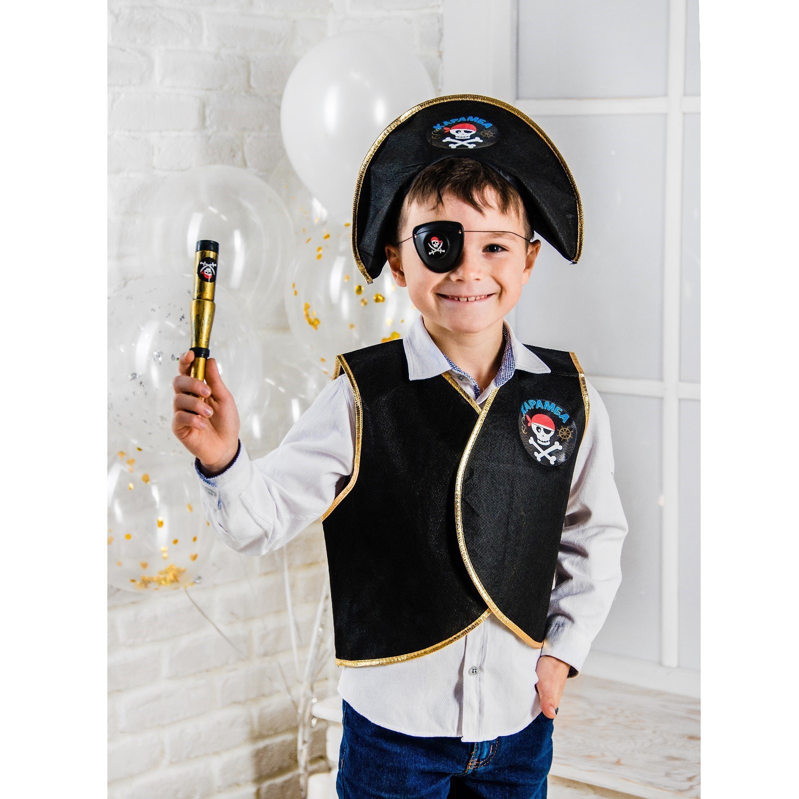 Карнавальный костюм «пират», шляпа, жилетка, наглазник, орден, подзорная труба, кодекс