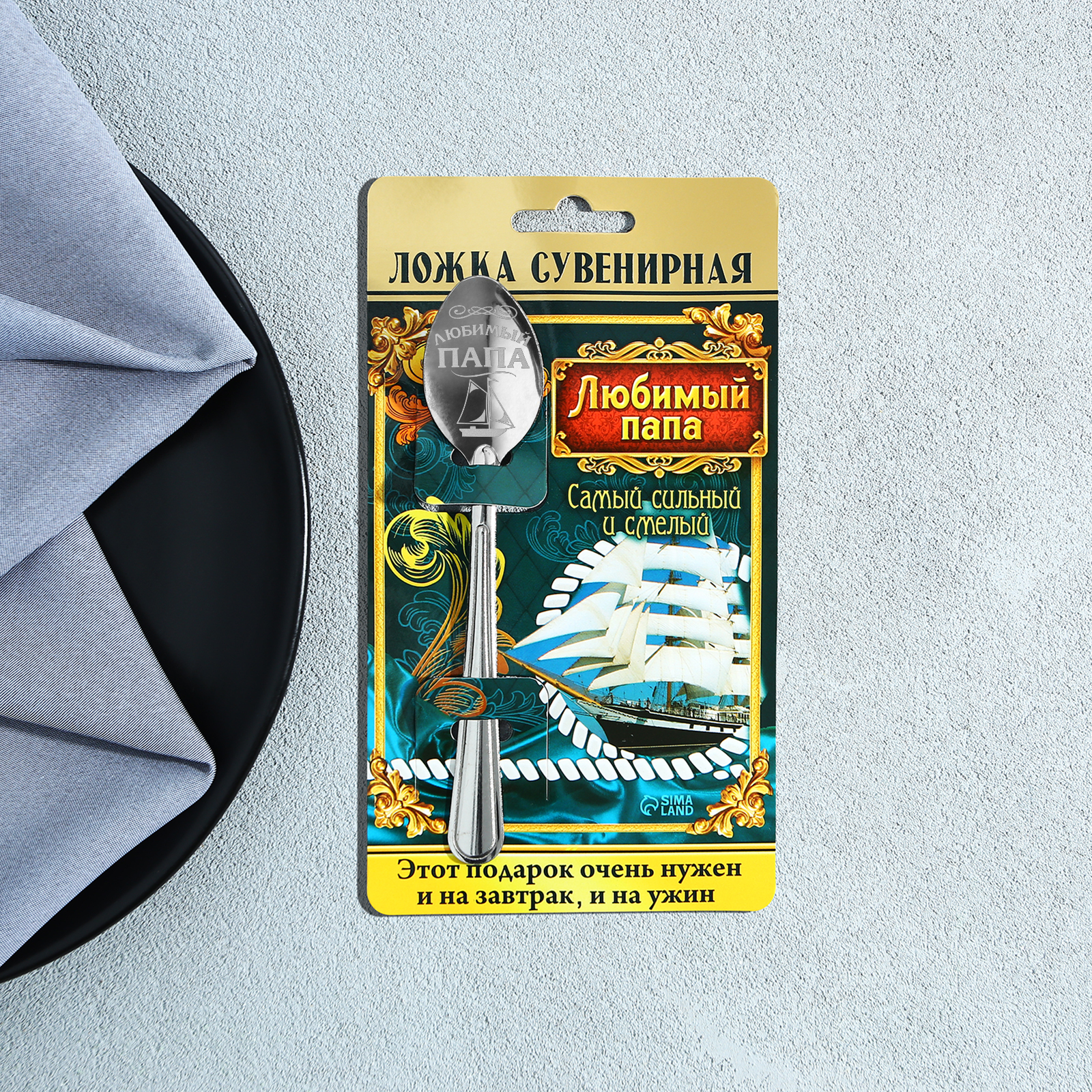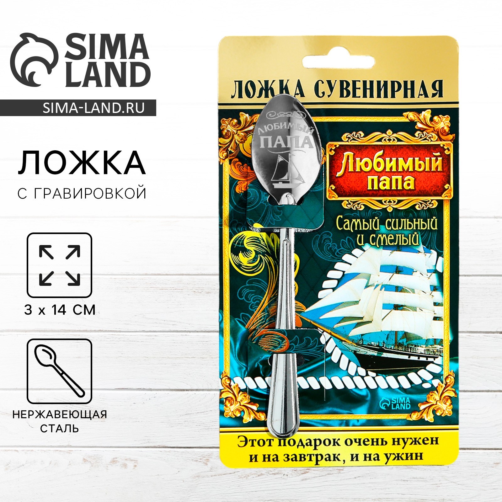 Ложка чайная с гравировкой «любимый папа», на подарочной открытке, 3 х 14 см.