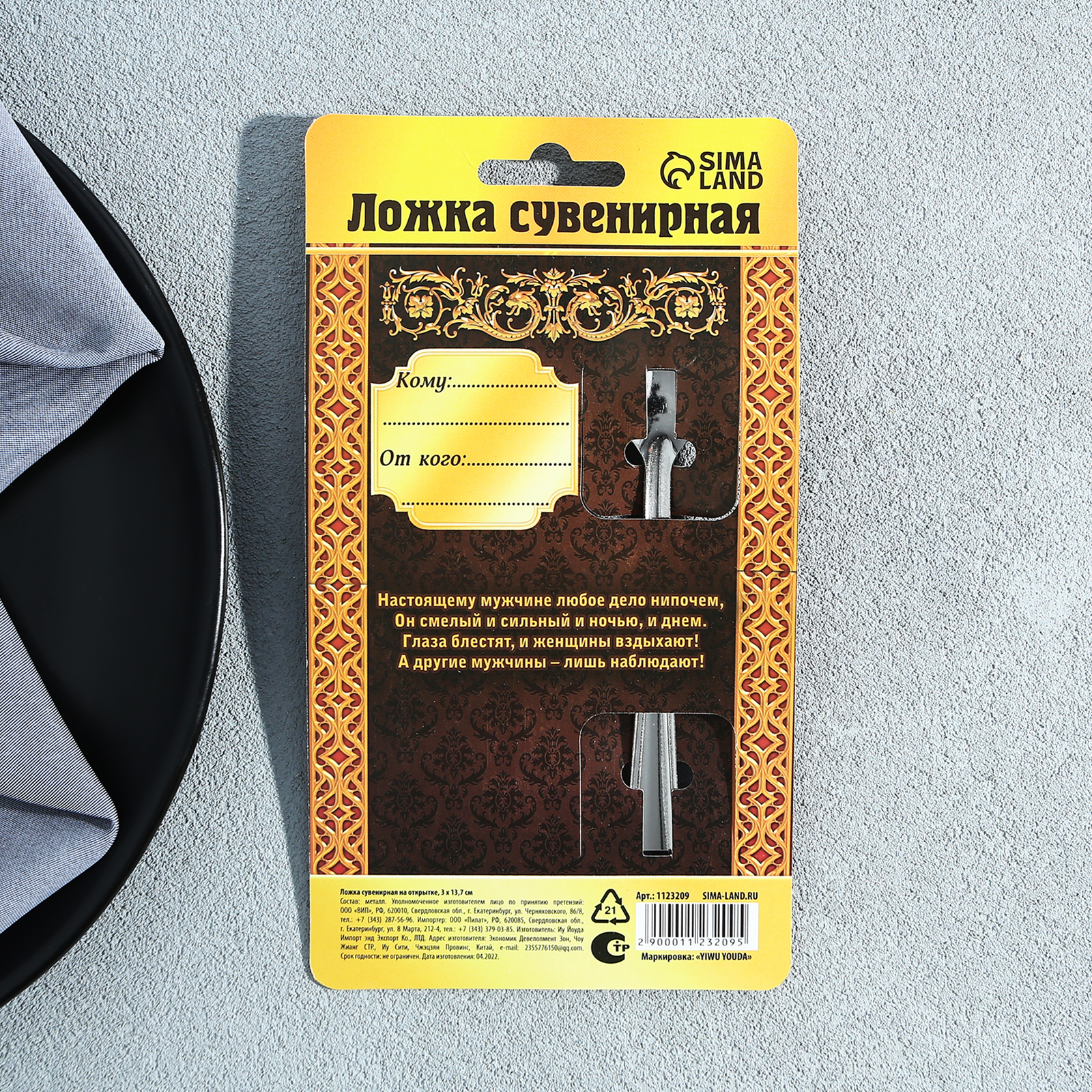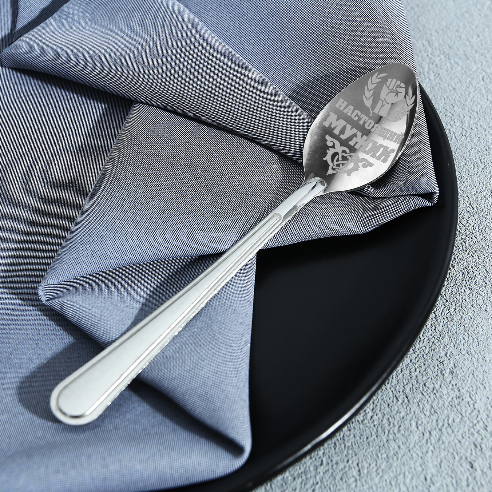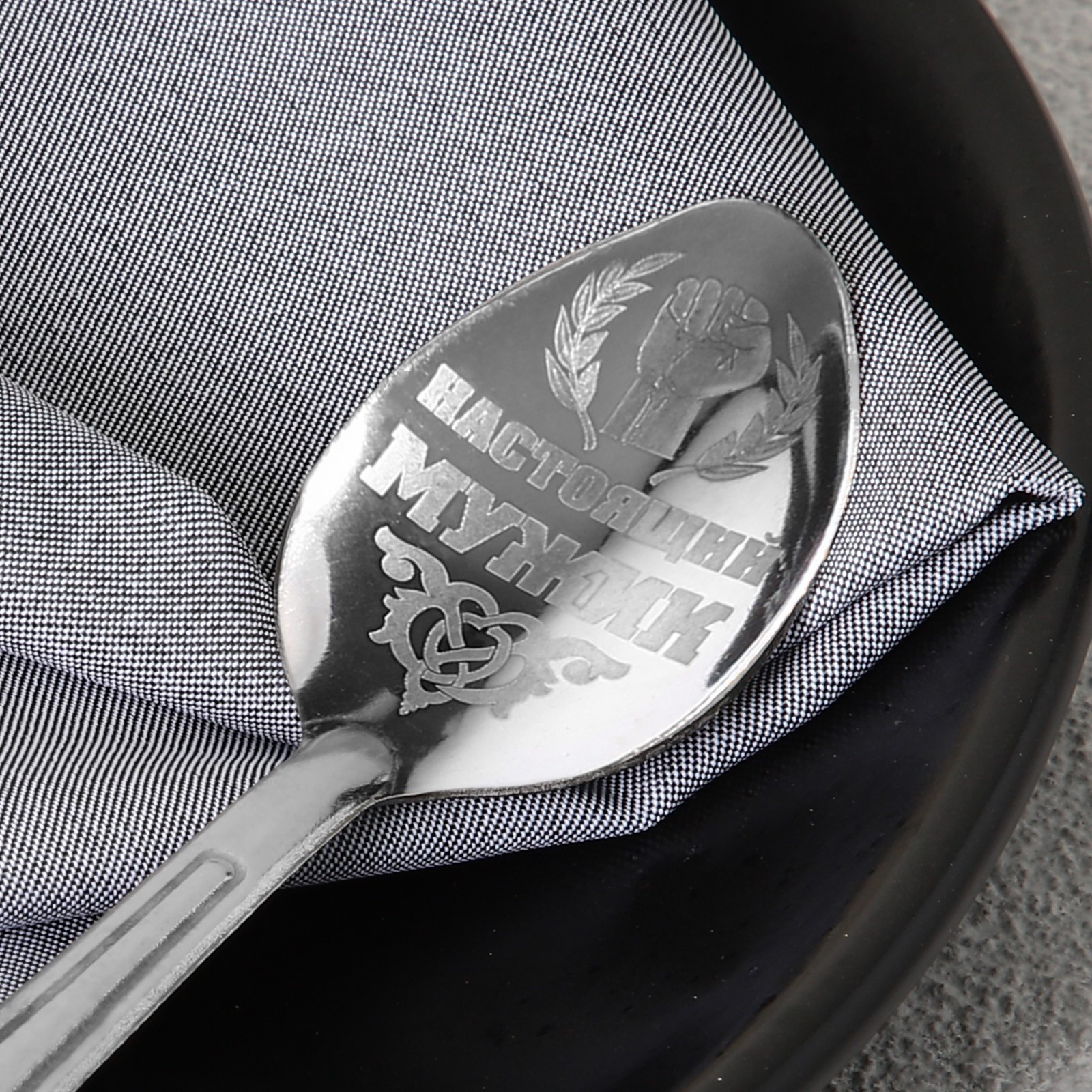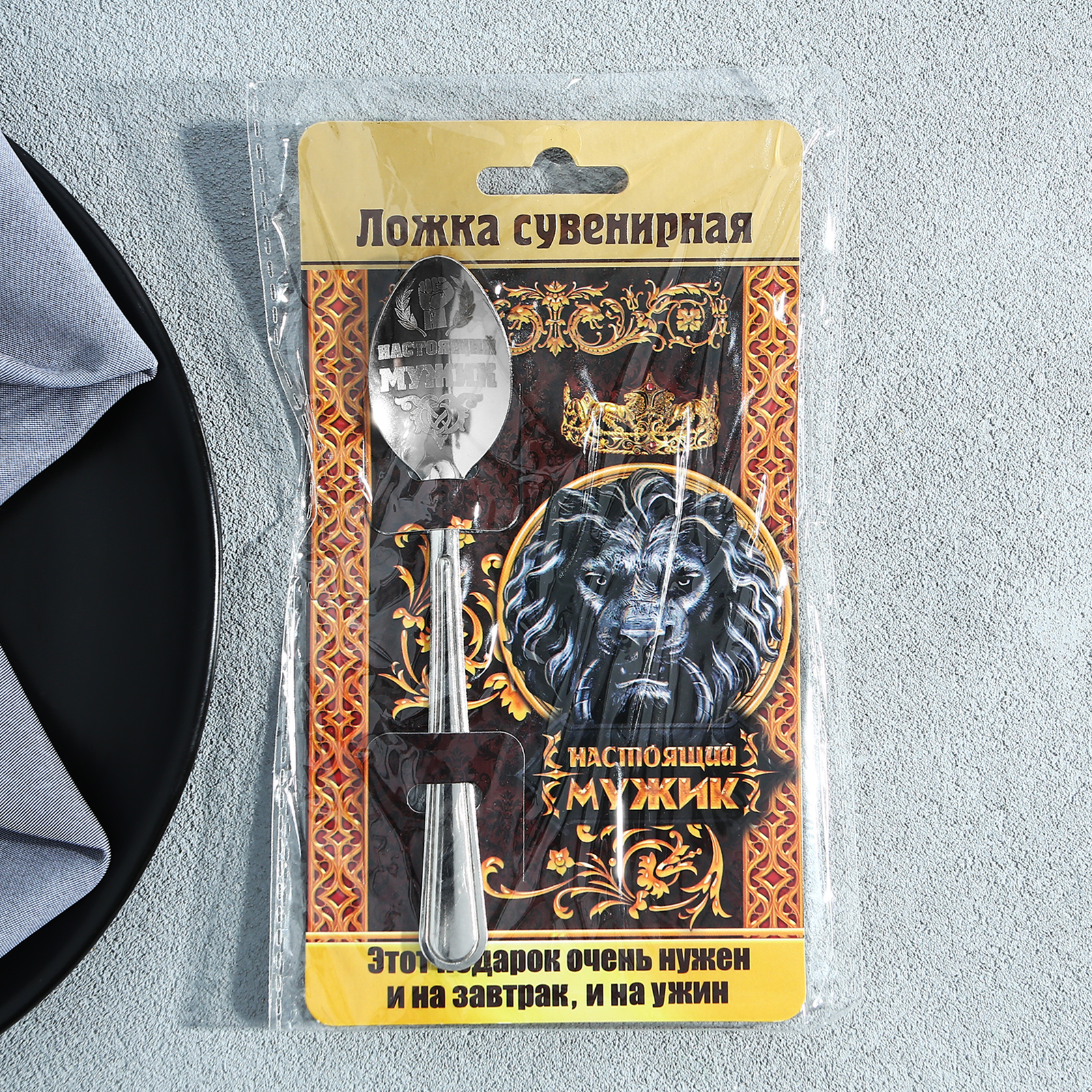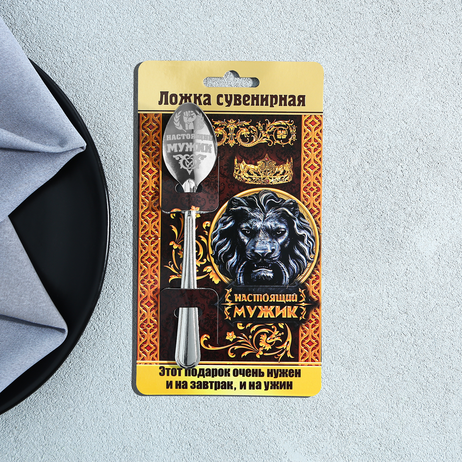 Ложка чайная с гравировкой «настоящий мужик», на подарочной открытке, 3 х 14 см.