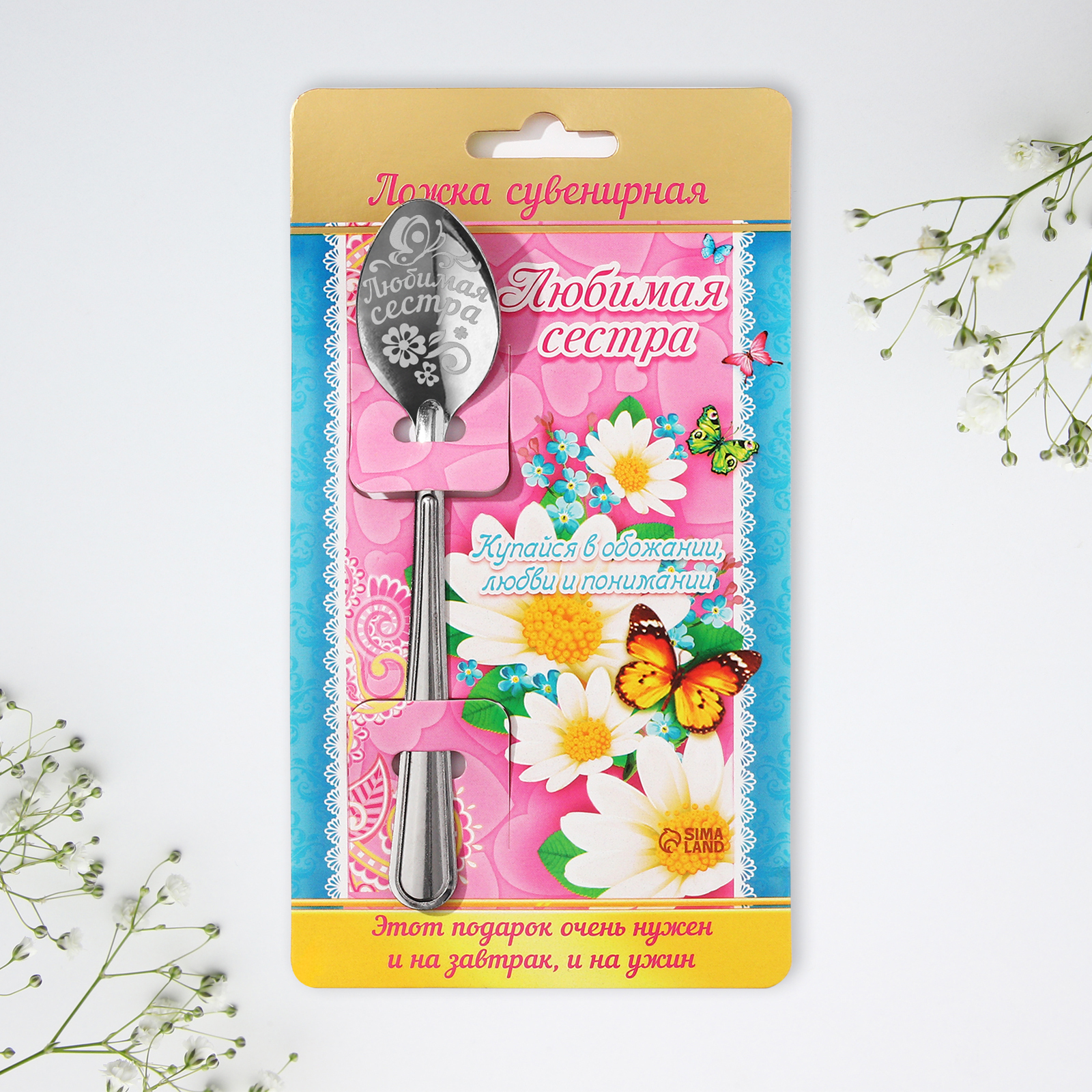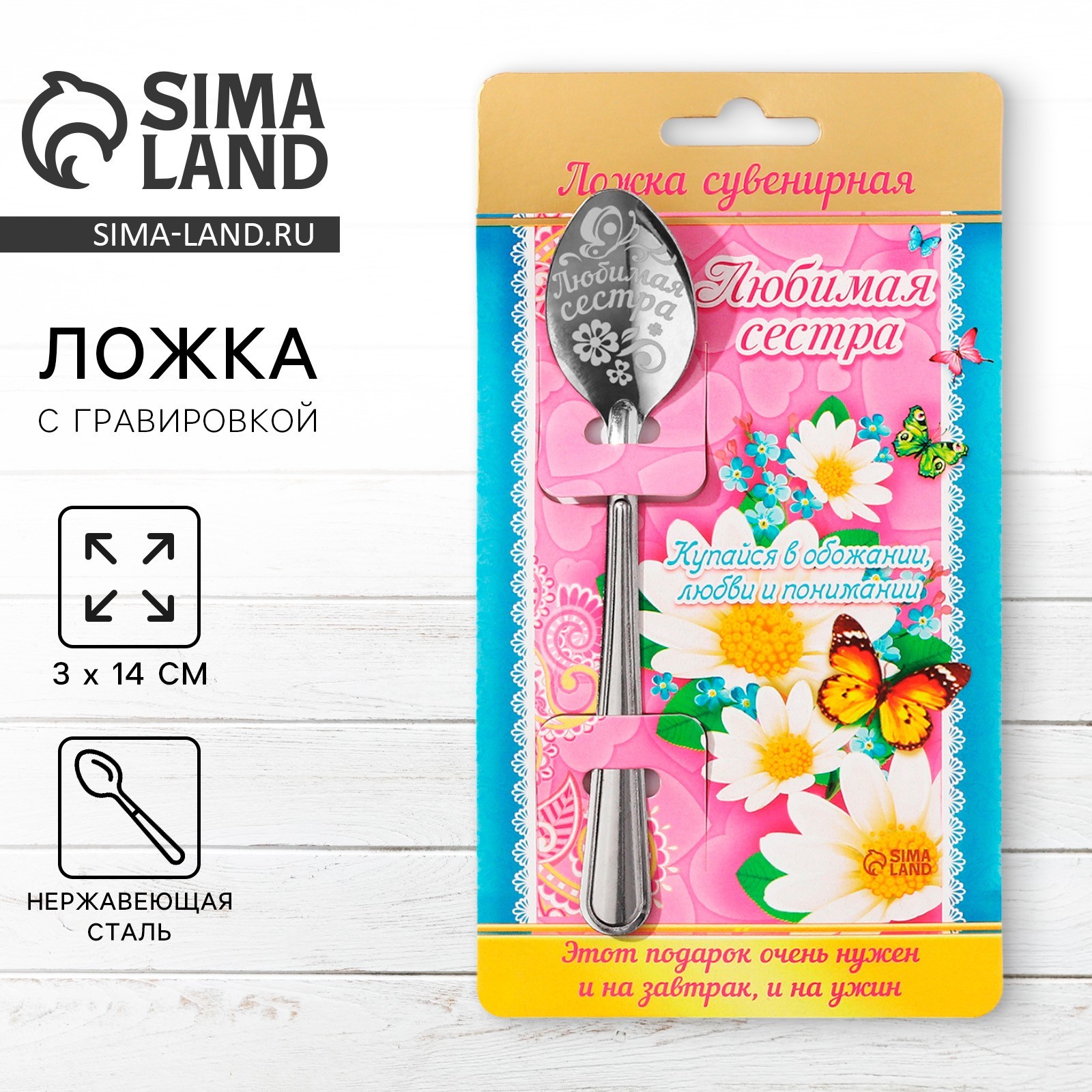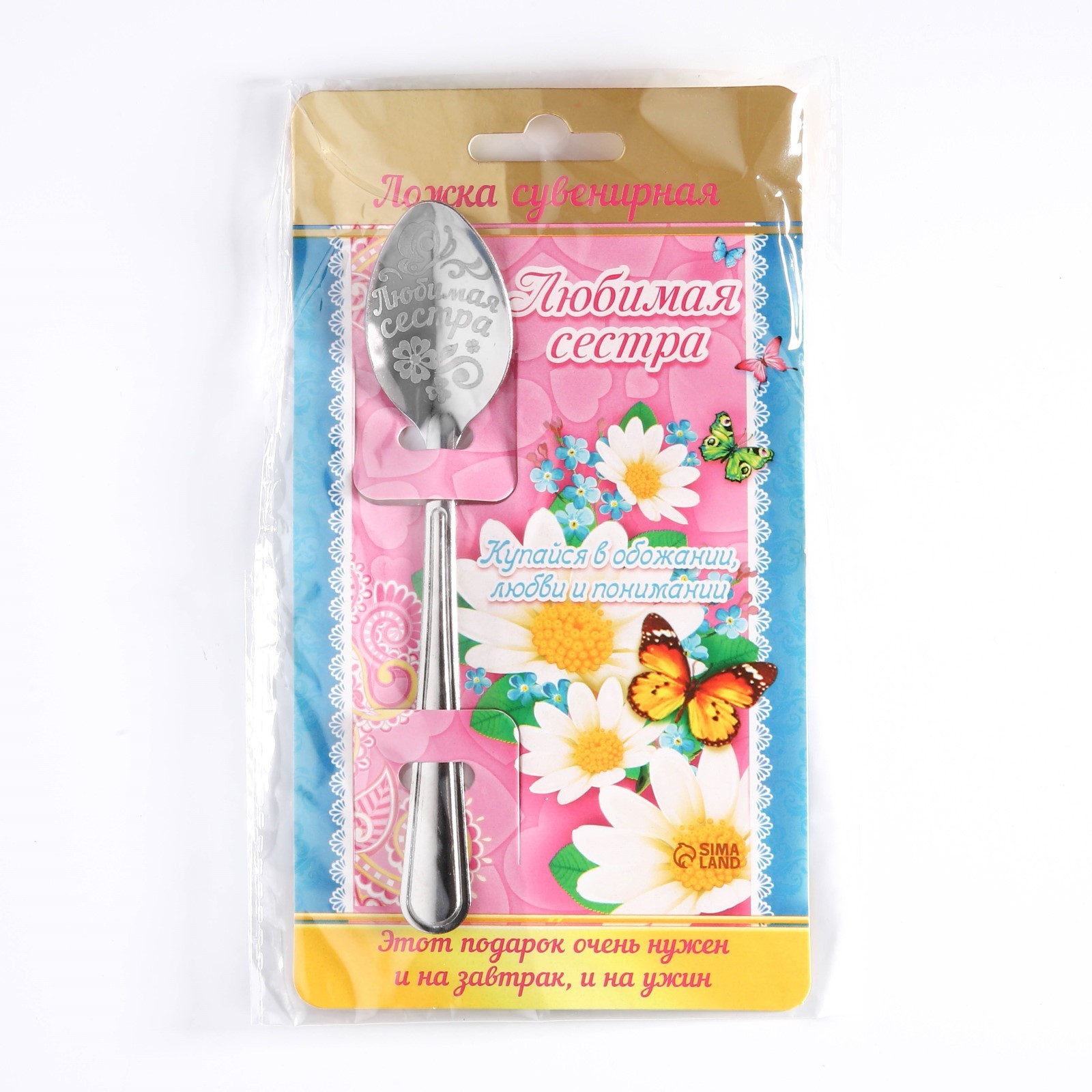 Ложка чайная с гравировкой «любимая сестра», на подарочной открытке, 3 х 14 см.