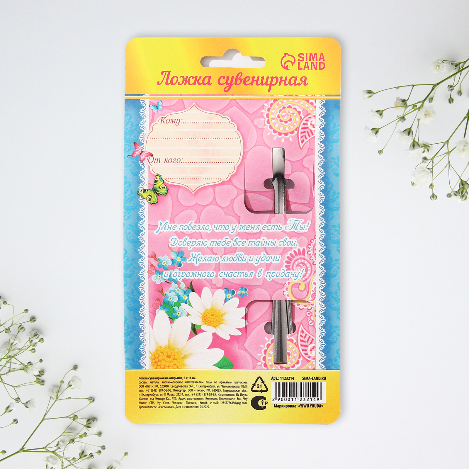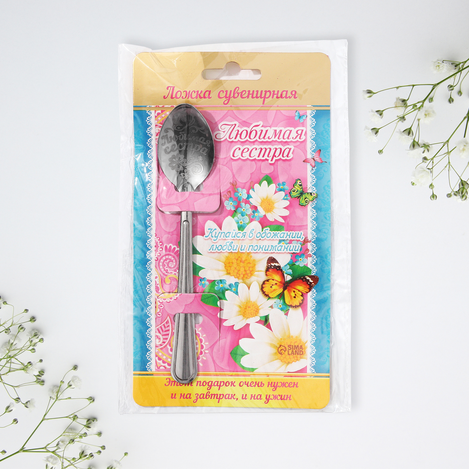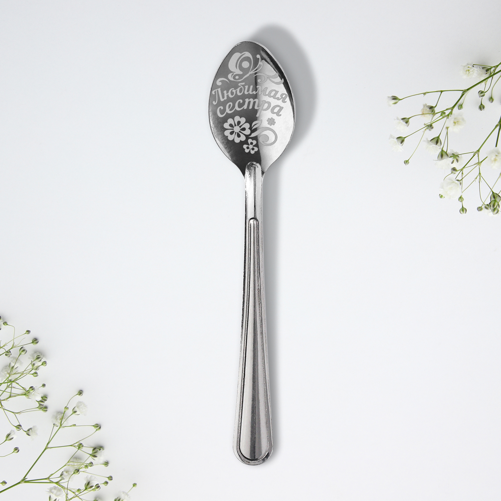 Ложка чайная с гравировкой «любимая сестра», на подарочной открытке, 3 х 14 см.