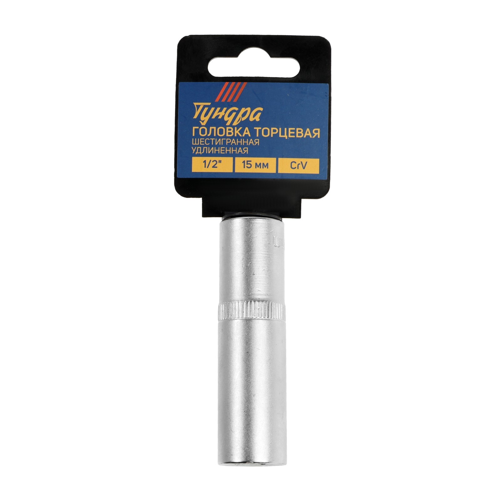 Головка торцевая шестигранная удлиненная тундра, под квадрат 1/2, 15 мм, Crv