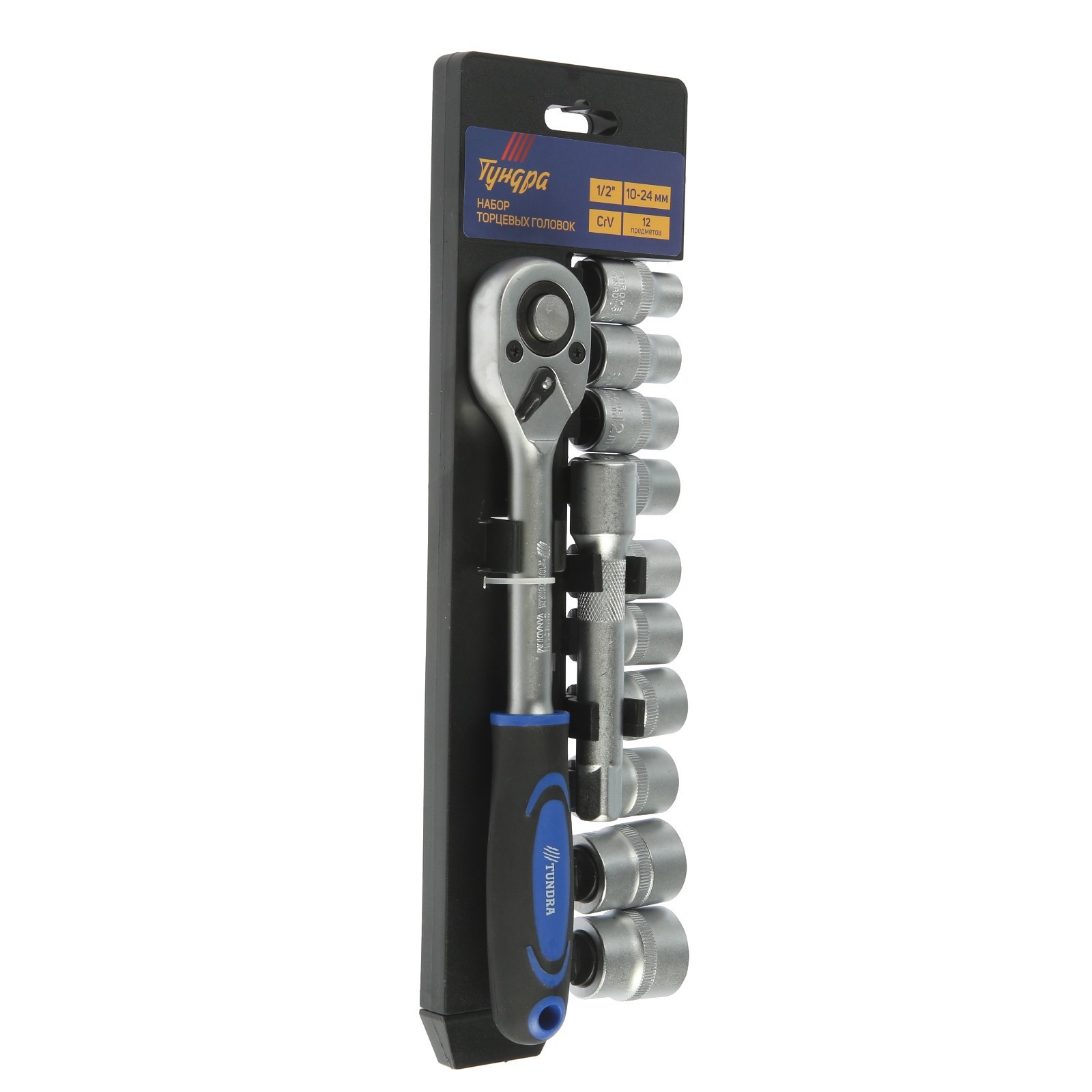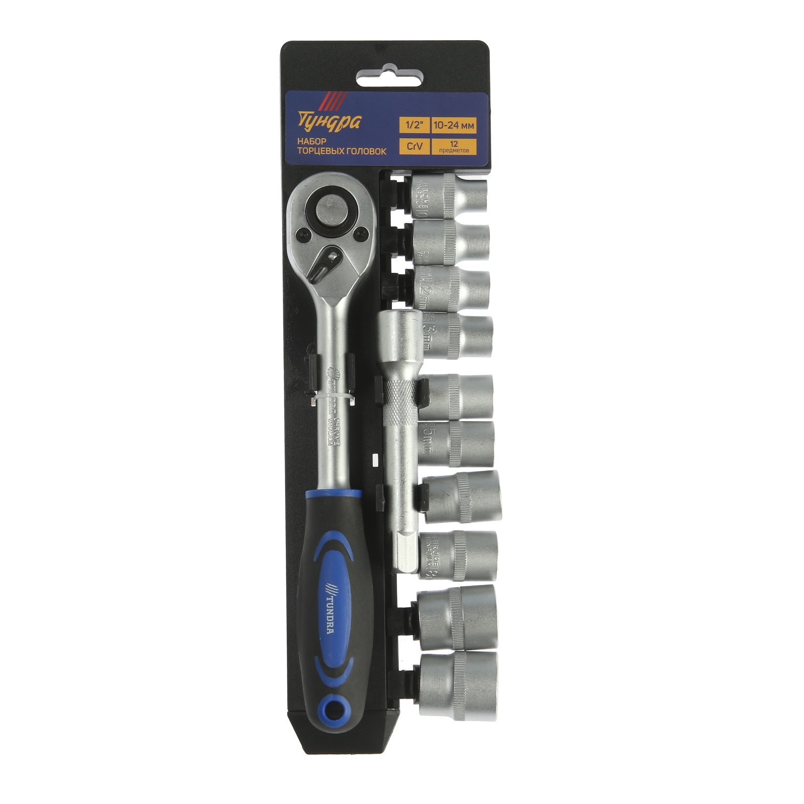 Набор торцевых головок тундра, трещотка, Crv, 1/2, 10 - 24 мм, 12 предметов