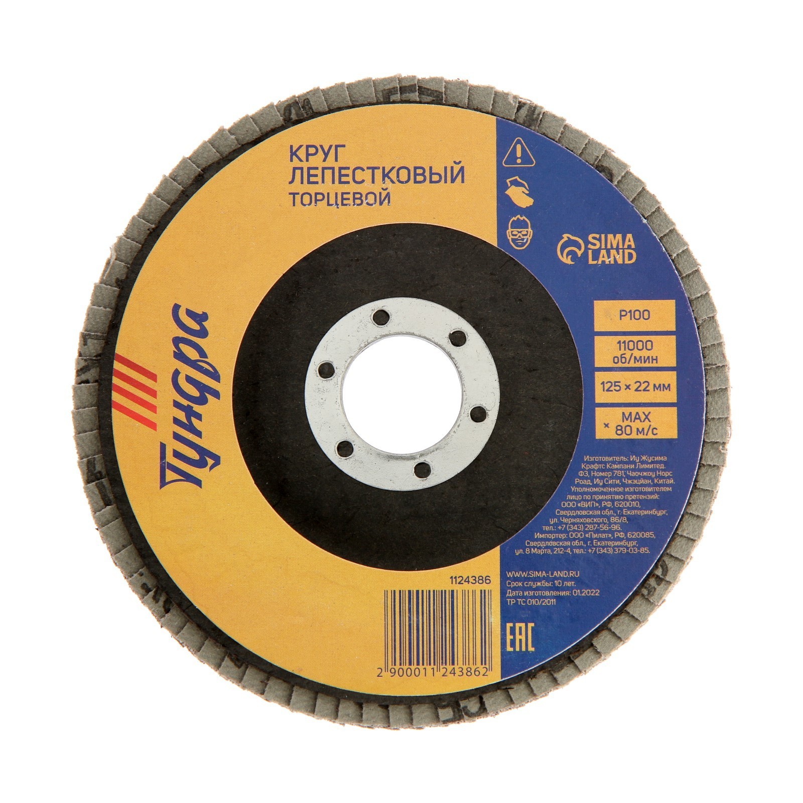 Круг лепестковый торцевой тундра, 125 22 мм, р100.