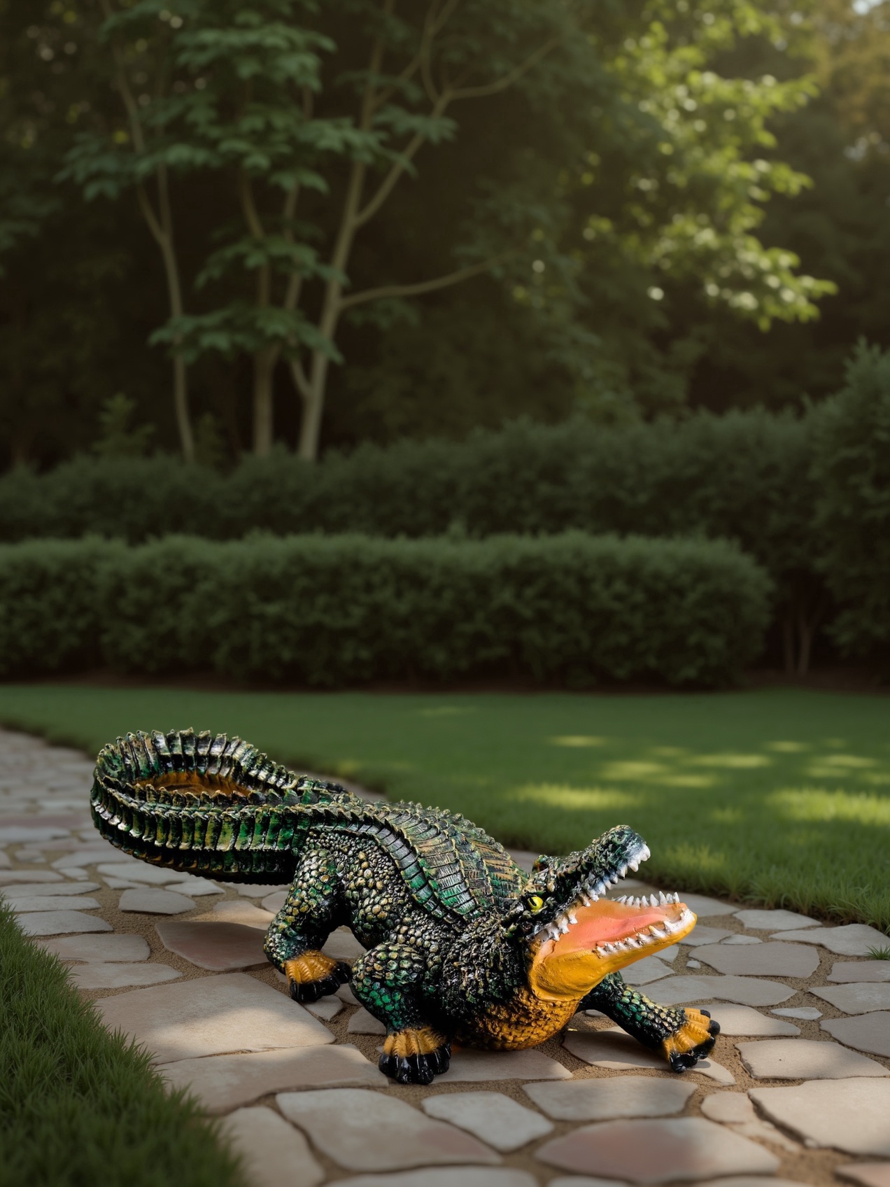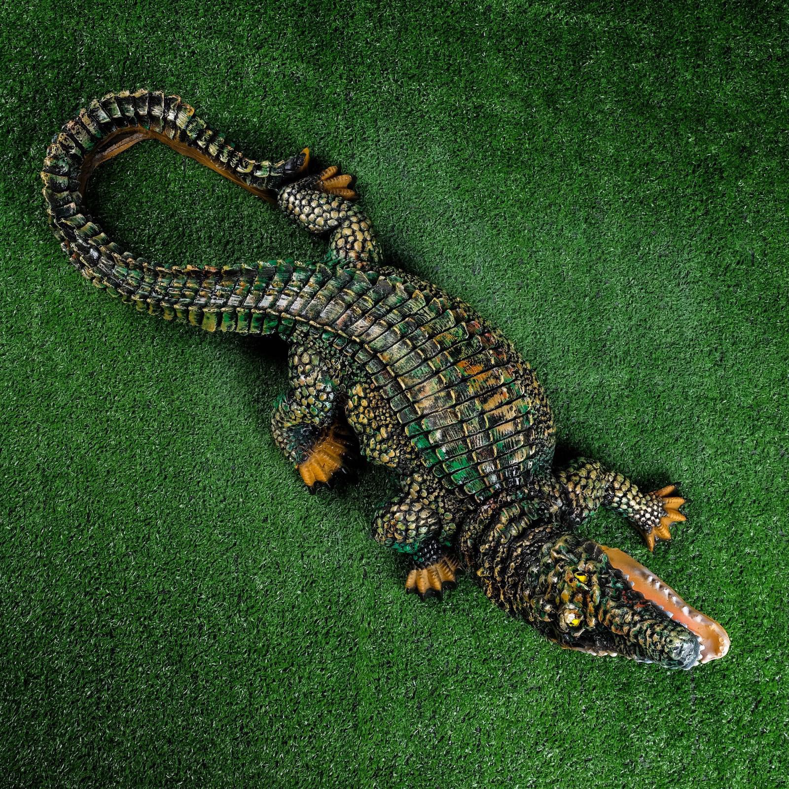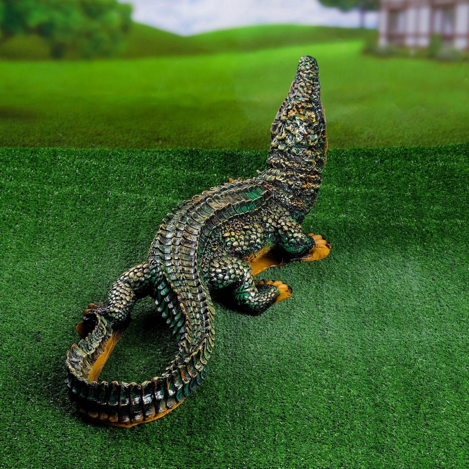 Садовая фигура из полистоуна «крокодил», 32 83 28 см. Садовая фигура — это всегда стильное и яркое решение для ландшафтного декора, который добавит уюта и индивидуальности дачному участку, саду, огороду или клумбе. С ее помощью можно оформить вход на участок, разграничить пространство, разметить дорожку, создать тематическую атмосферу и превратить сад в единую композицию (узнать, как это сделать, можно в статье 5 причин использовать садовые фигуры на даче). Чтобы украшение радовало вас дольше, рекомендуем следовать Инструкции по уходу за садовыми фигурами. Цвет:Разноцветный|Цвет:Зелёный|Высота, см:32|Материал:Полистоун|Одноцветный:Нет|Можно оставлять зимой на улице:Да|Страна:Россия  развернуть описание ▼
