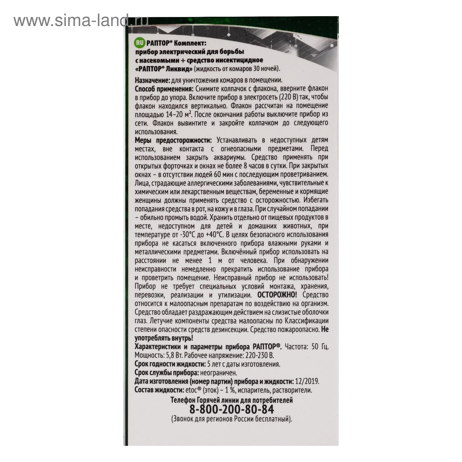 Комплект раптор фумигатор + жидкость без запаха, 30 ночей