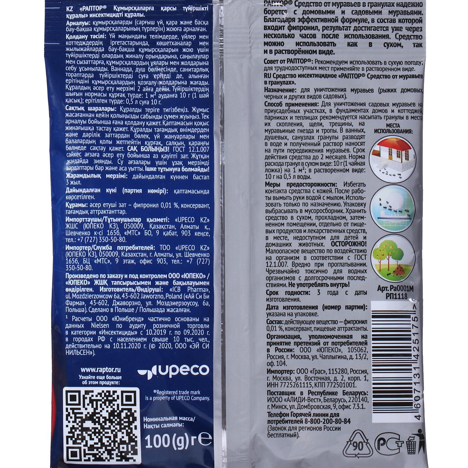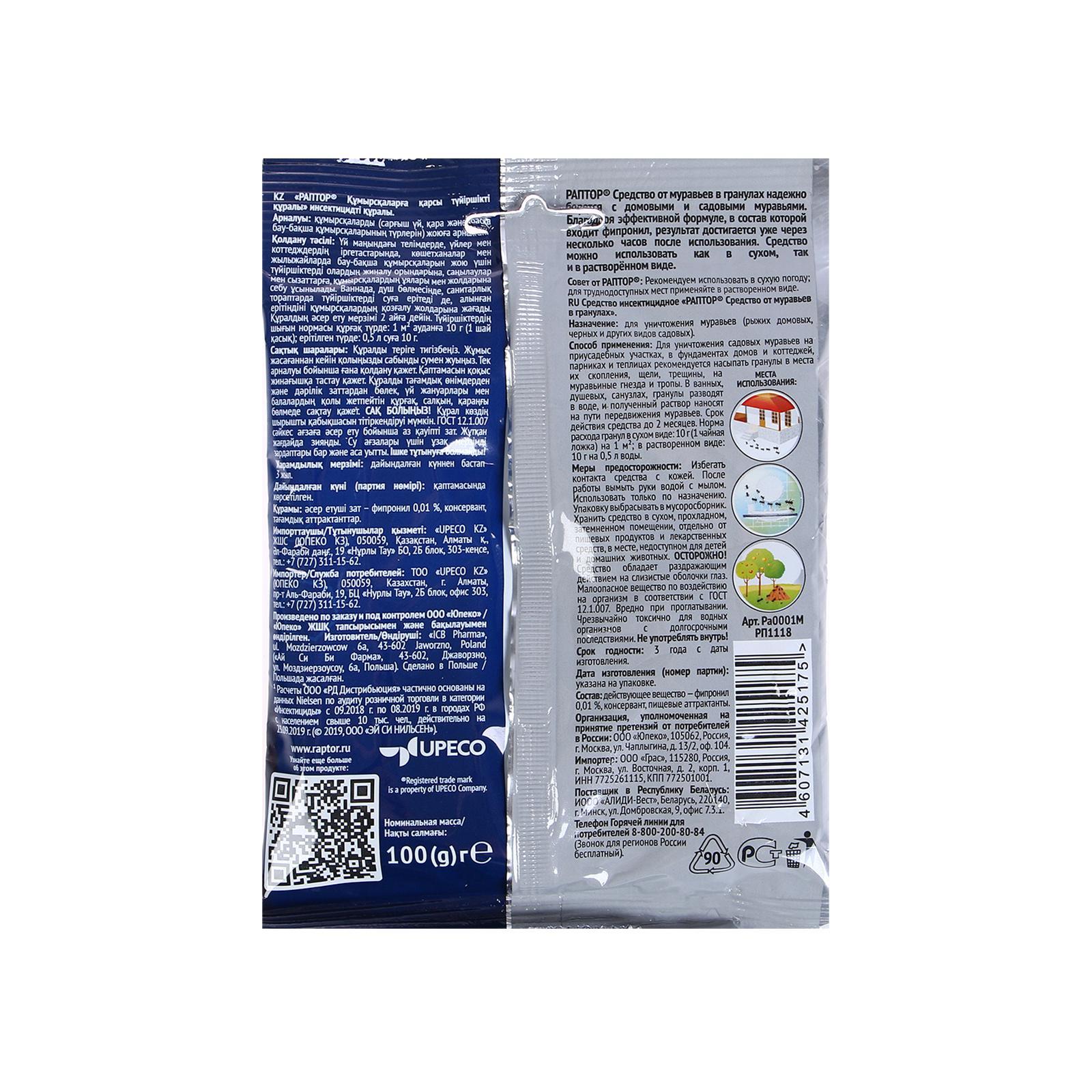 Гранулы от муравьев, раптор, домашних и садовых, 100г