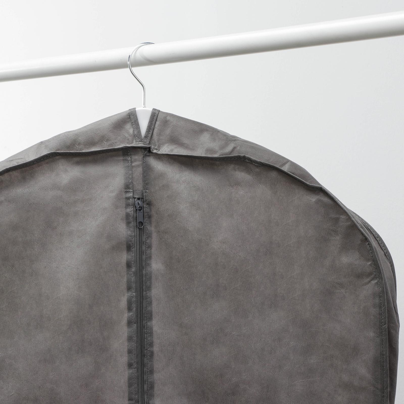Чехол для одежды зимний, 140x60x10 см, спанбонд, цвет серый. Чтобы ваша одежда служила вам долго, необходимо правильно за ней ухаживать. Грамотное хранение позволит продлить срок её службы и сохранить привлекательный внешний вид. Поможет нам в этом Чехол для одежды Преимущества Используя чехол для одежды, вы значительно экономите пространство. Это особенно актуально, если у вас много вещей и маленький шкаф. Опрятный внешний вид. Больше никаких платьев, кофт и юбок, висящих вразнобой. Аккуратные чехлы позволяют рассортировать одежду и скрыть её от посторонних глаз. Для людей, использующих стойки вместо обычного шкафа— это самый оптимальный вариант. Чехол надёжно защищает одежду от пыли и грязи, от насекомых, механических повреждений или от возможного выцветания. Не даёт одежде изменить форму во время длительного хранения, препятствует образованию заломов. Спанбонд плотность – 60грм. Индивидуальный пакет со скотч клапаном. Особенности чехлов для одежды Специальный материал позволит вашей одежде «дышать». При бережном обращении срок службы такого чехла не ограничен. В них можно хранить не только одежду, но и одеяла, подушки, постельное белье. Чехол «запечатывается» при помощи прочной молнии. Важно помнить: предварительно подготовьте вещи к хранению на длительный срок:почистите их, расправьте складки;выбирайте чехол оптимального размера: вещи не должны загибаться снизу;не рекомендуется вешать сразу несколько объёмных вещей в один чехол: они могут помяться. Если вы цените порядок и опрятность, если вы дорожите своими вещами, желаете сохранить их и продлить срок службы — заказывайте чехол для одежды. Заходите в большой каталог и выбирайте изделие нужного вам цвета и размера по выгодной цене! Цвет: Серый Ширина, см: 60 Высота, см: 140 В наборе, шт.: 1 Вид: Чехол для одежды Материал: Спанбонд Температурное ограничение: Нет  развернуть описание ▼