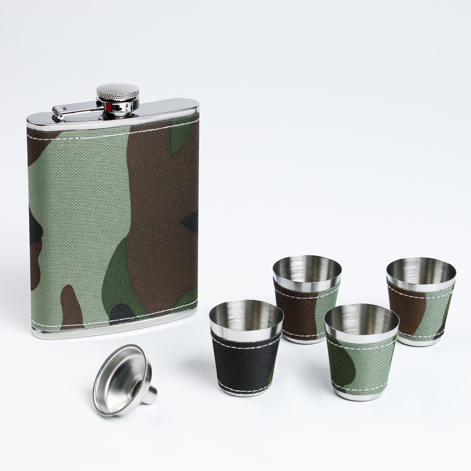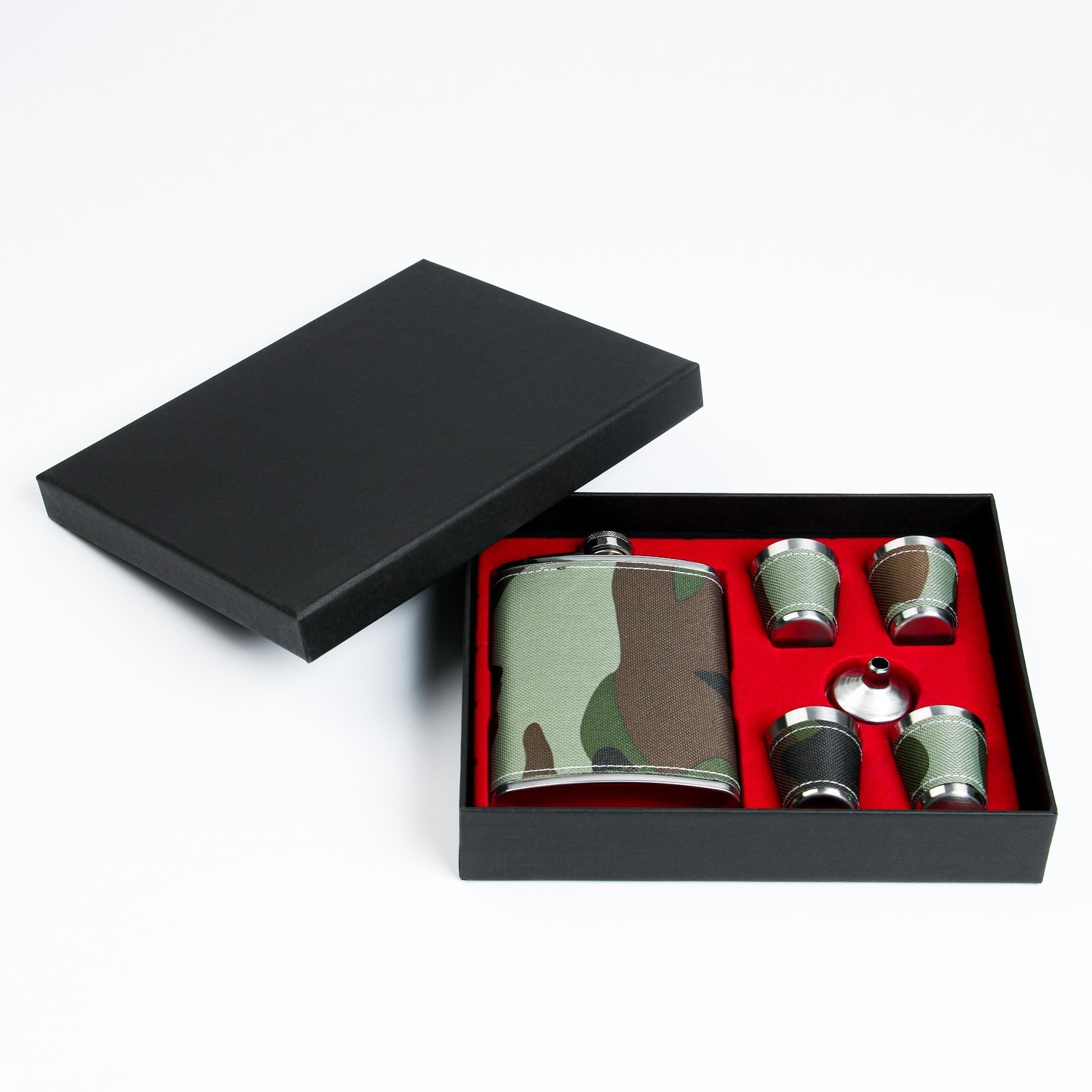 Подарочный набор 6 в 1 "камуфляж": фляжка 240 мл, 4 стопки, воронка Подарочный набор 6 в 1 "камуфляж": фляжка 240 мл, 4 стопки, воронка