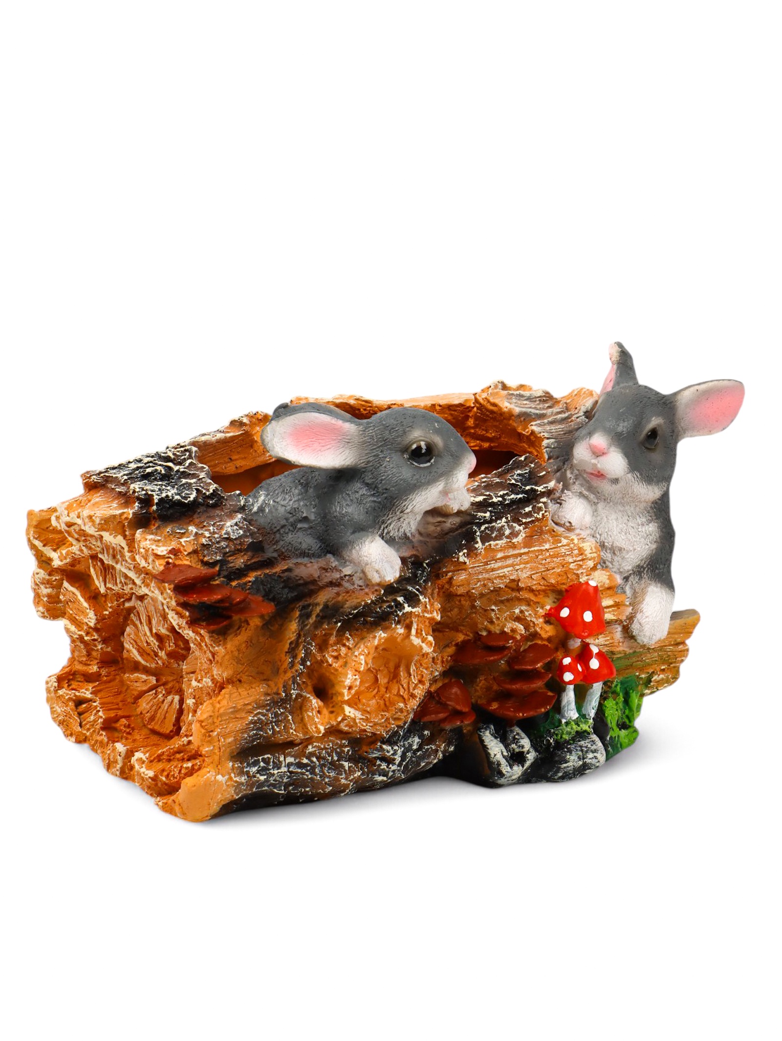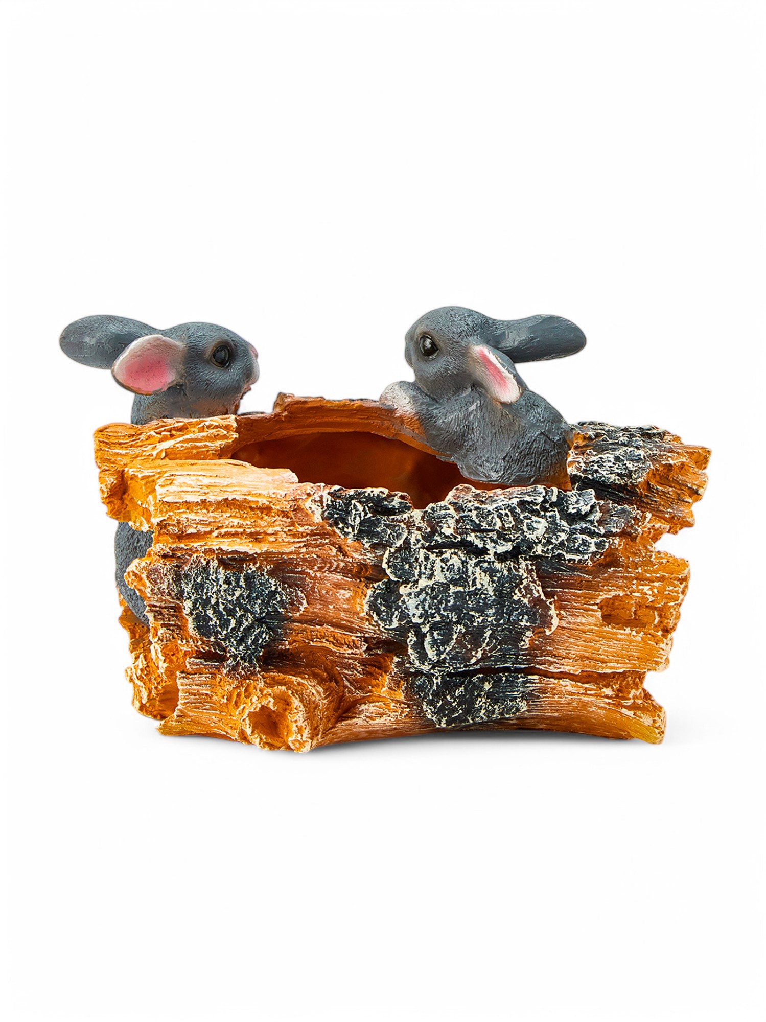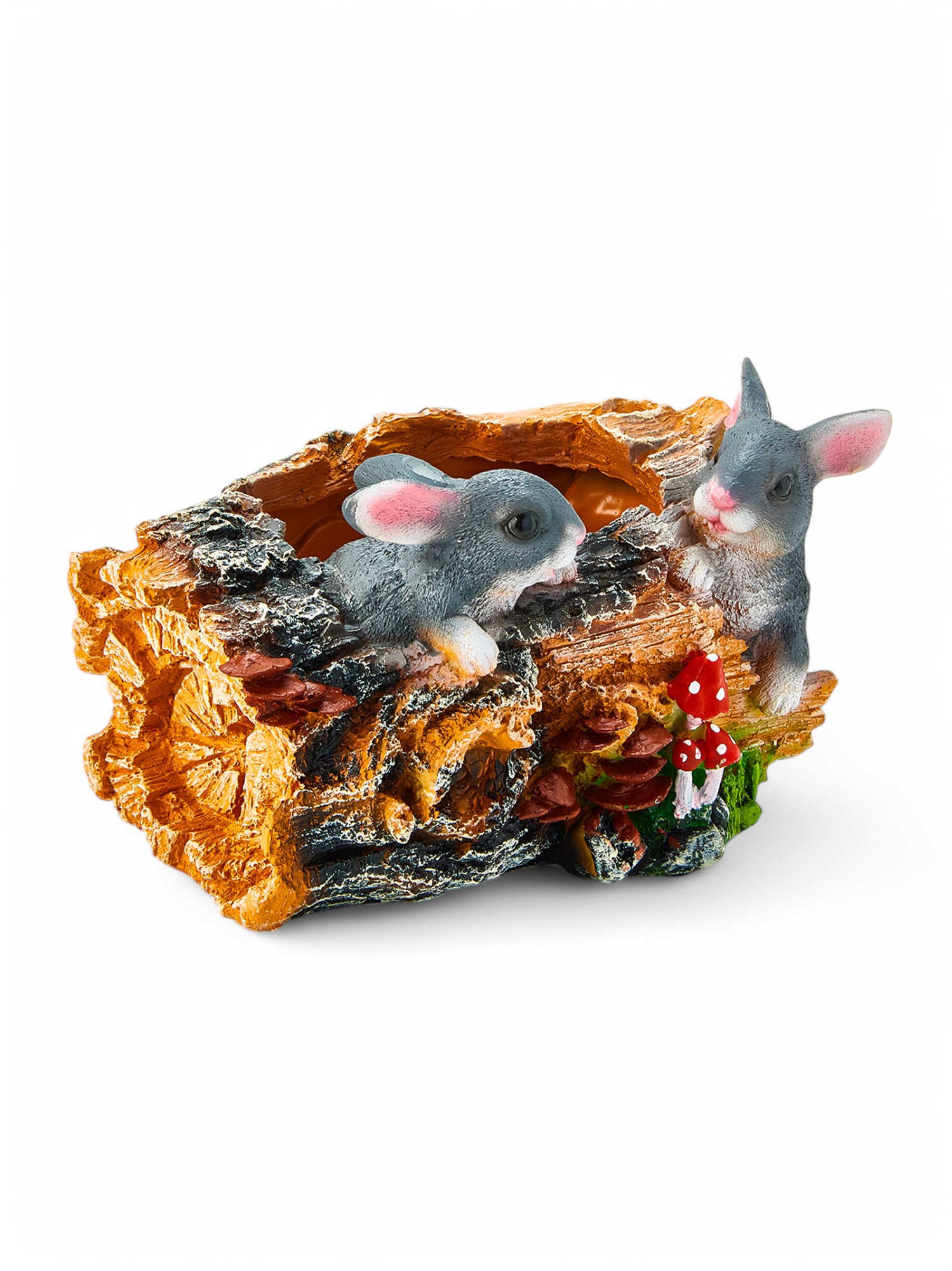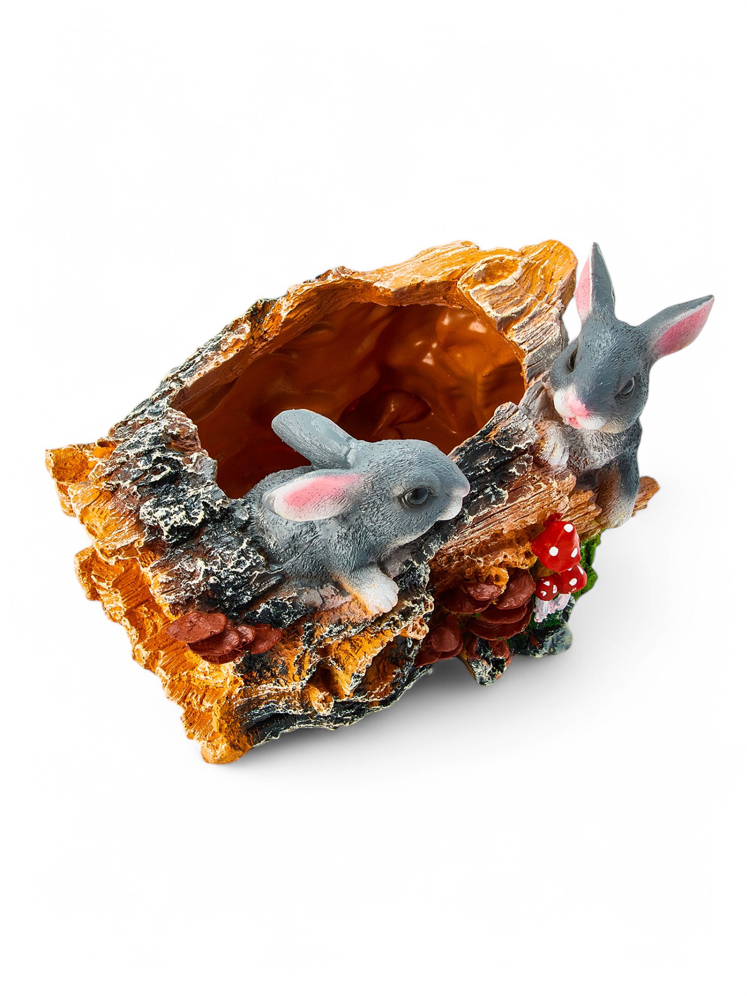 Фигурное кашпо для цветов «пень с зайцами», 29 19 17 см, полистоун