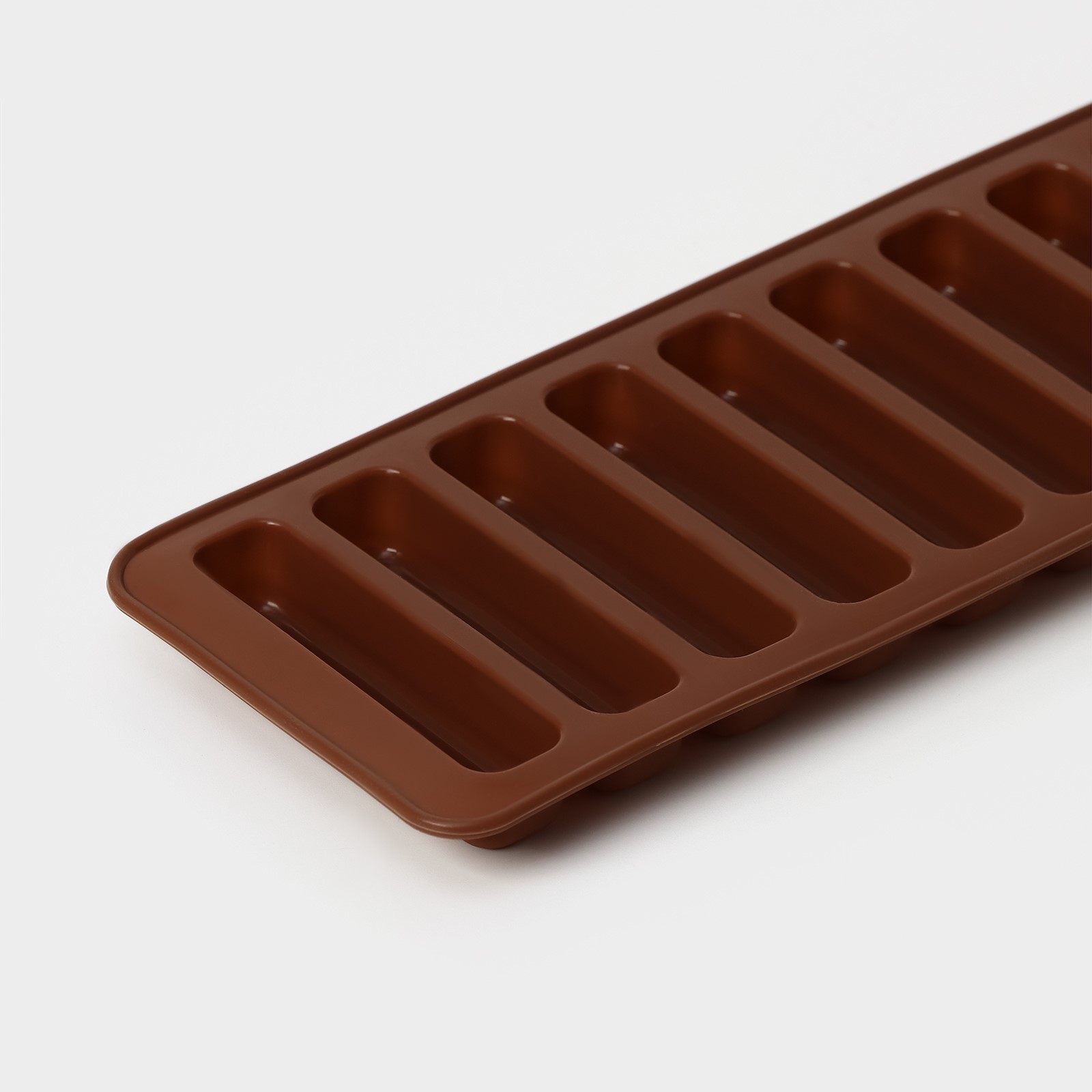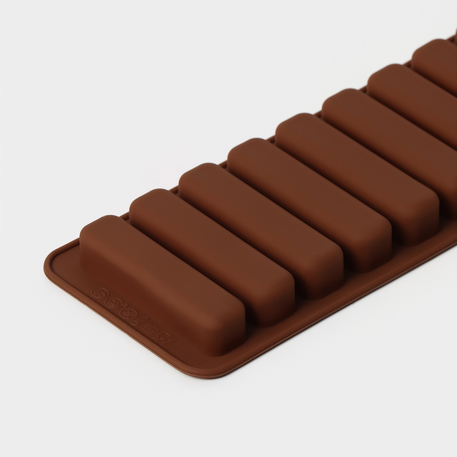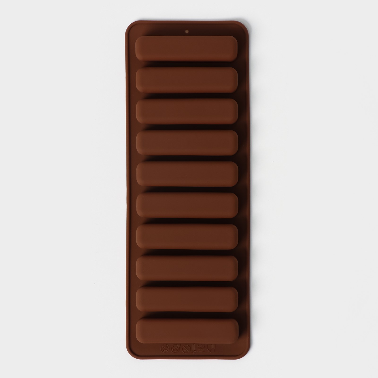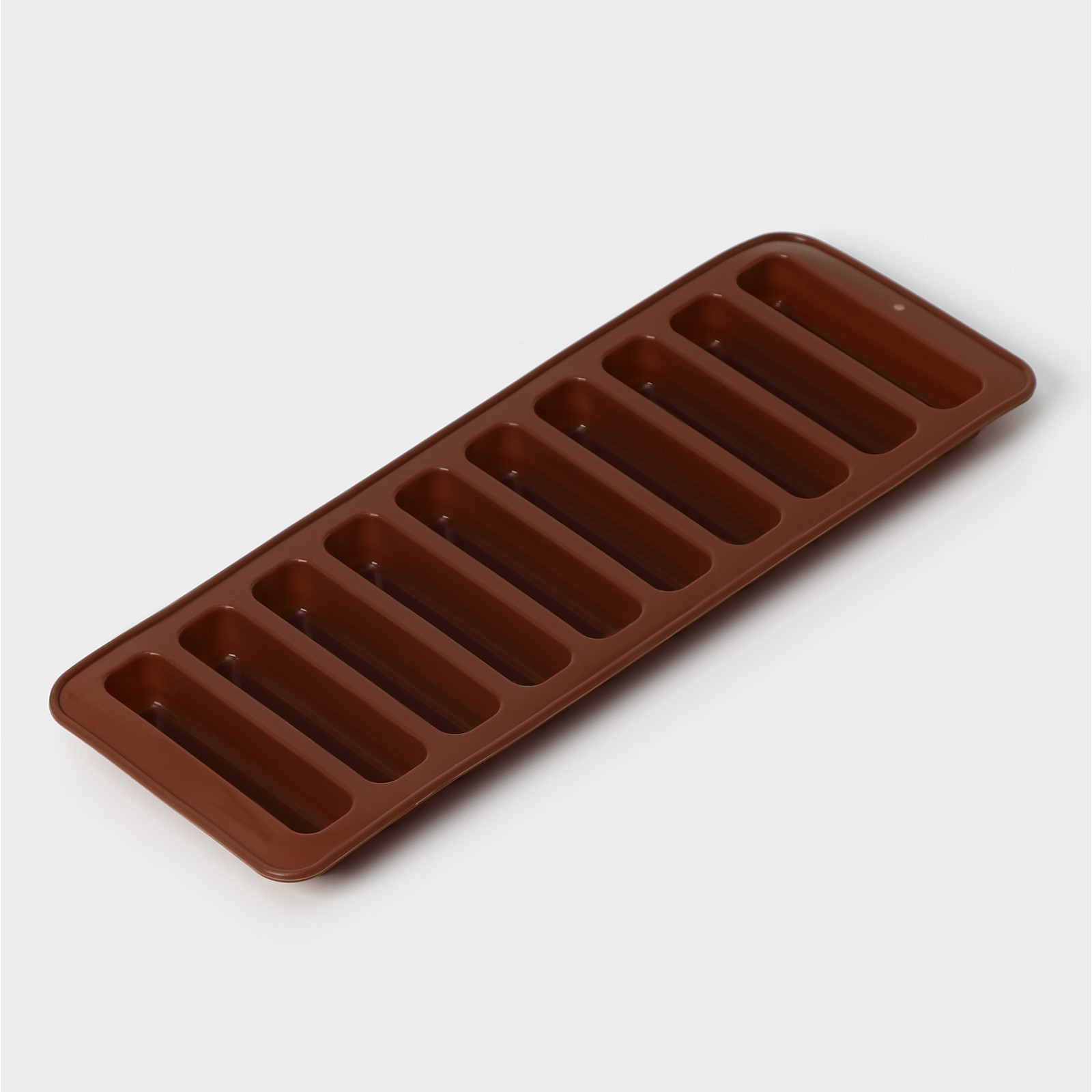 Форма для шоколада доляна «прямоугольник», силикон, 26x9,5 см, 10 ячеек (7,5x1,7 см), цвет коричневый