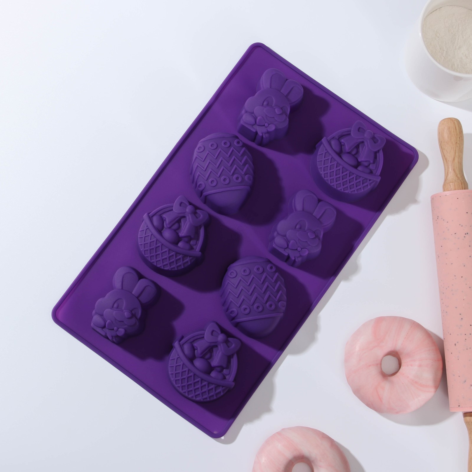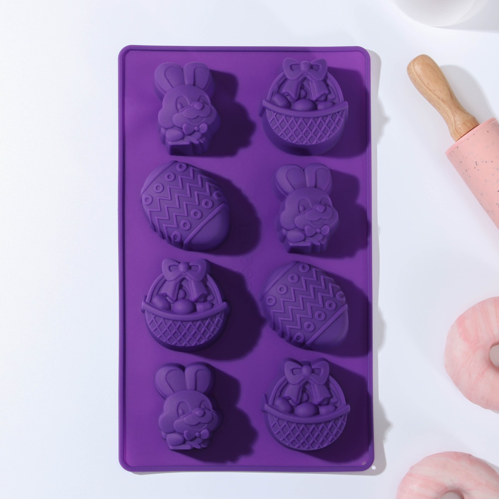 Форма силиконовая для выпечки доляна «пасха», 29x17 см, 8 ячеек (6,5x5,2 см), цвет микс