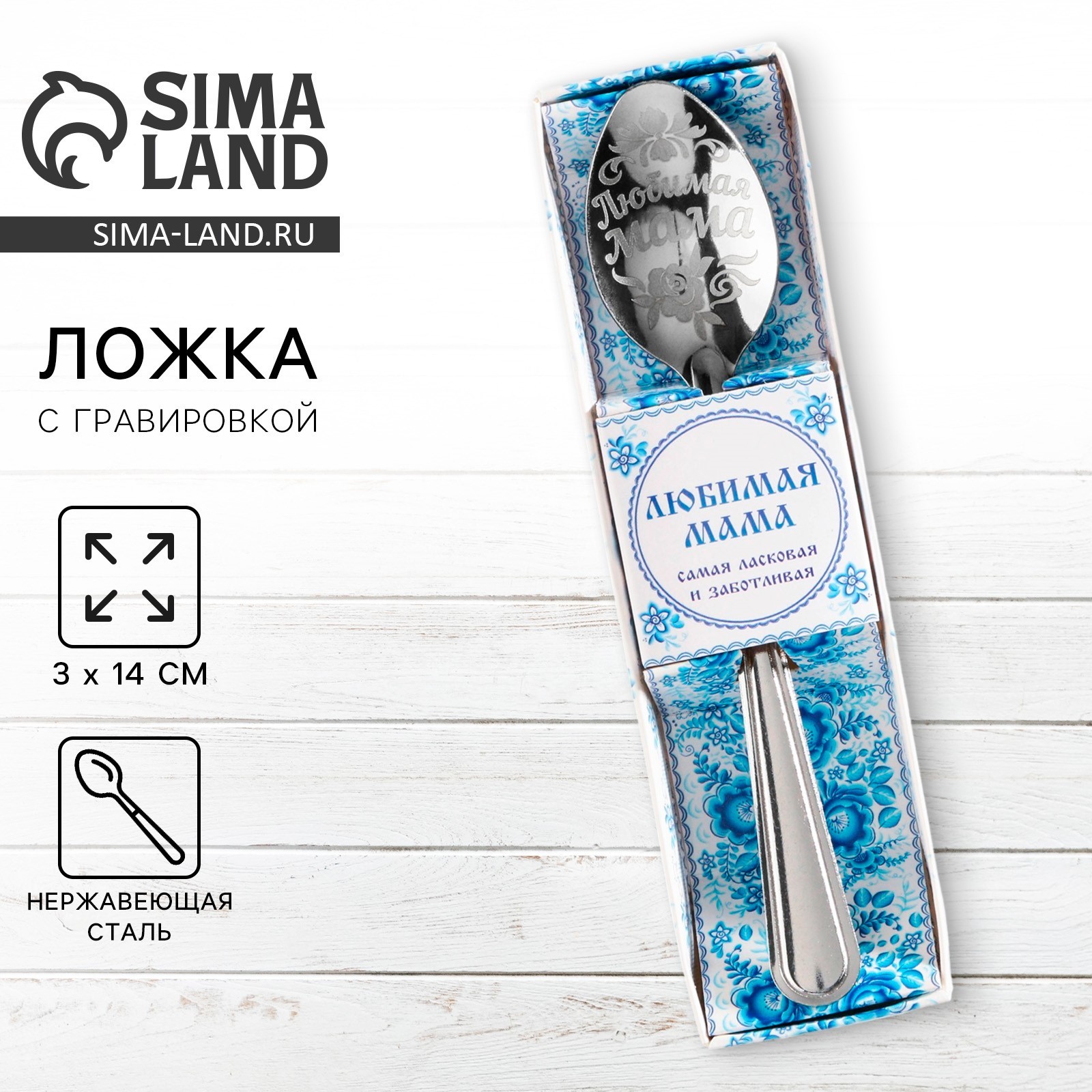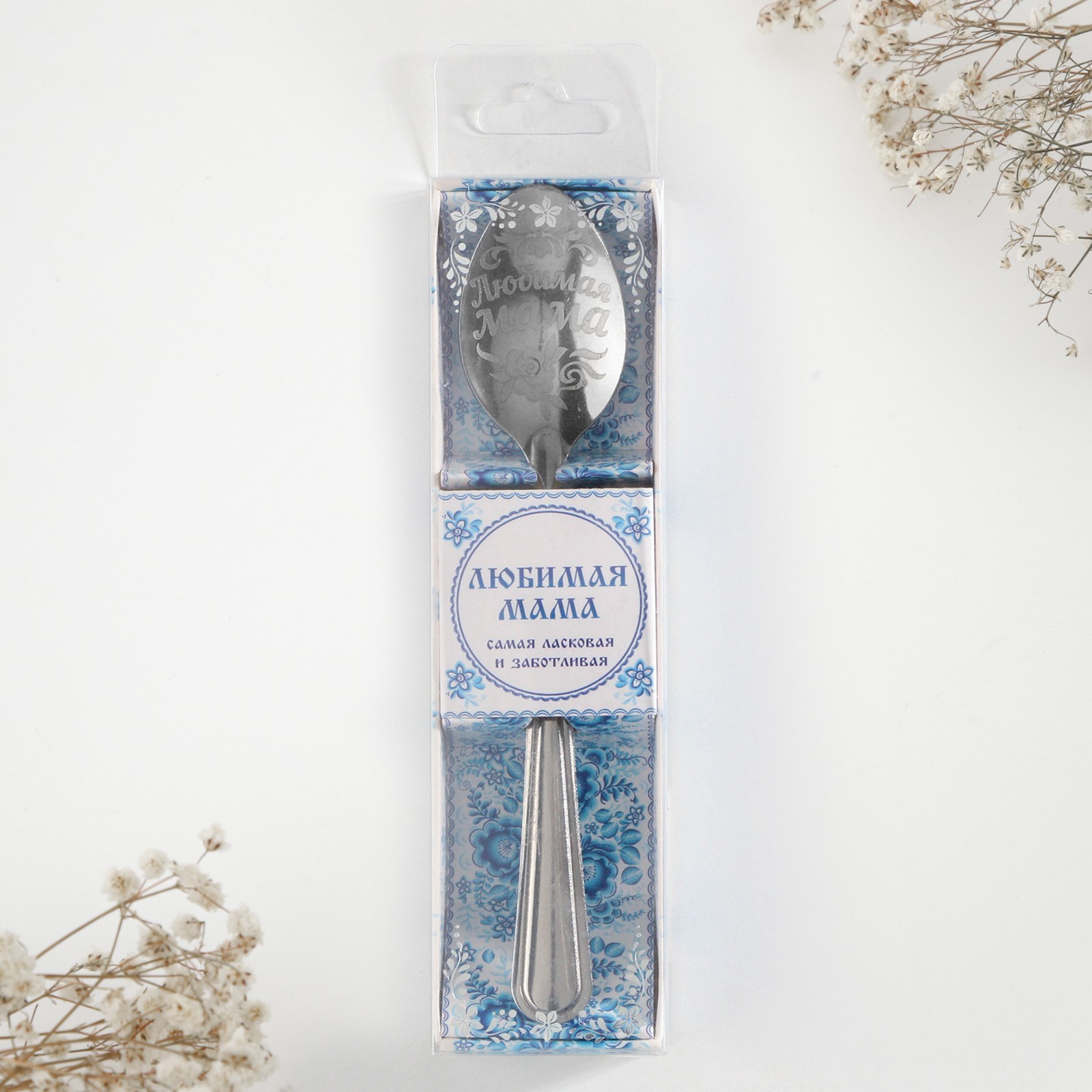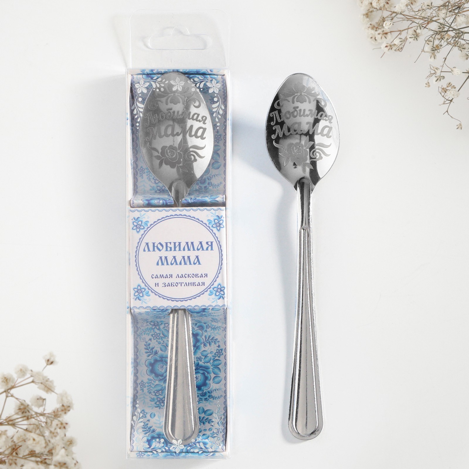 Ложка чайная с гравировкой «любимая мама», в подарочной коробке, 3 х 14 см.