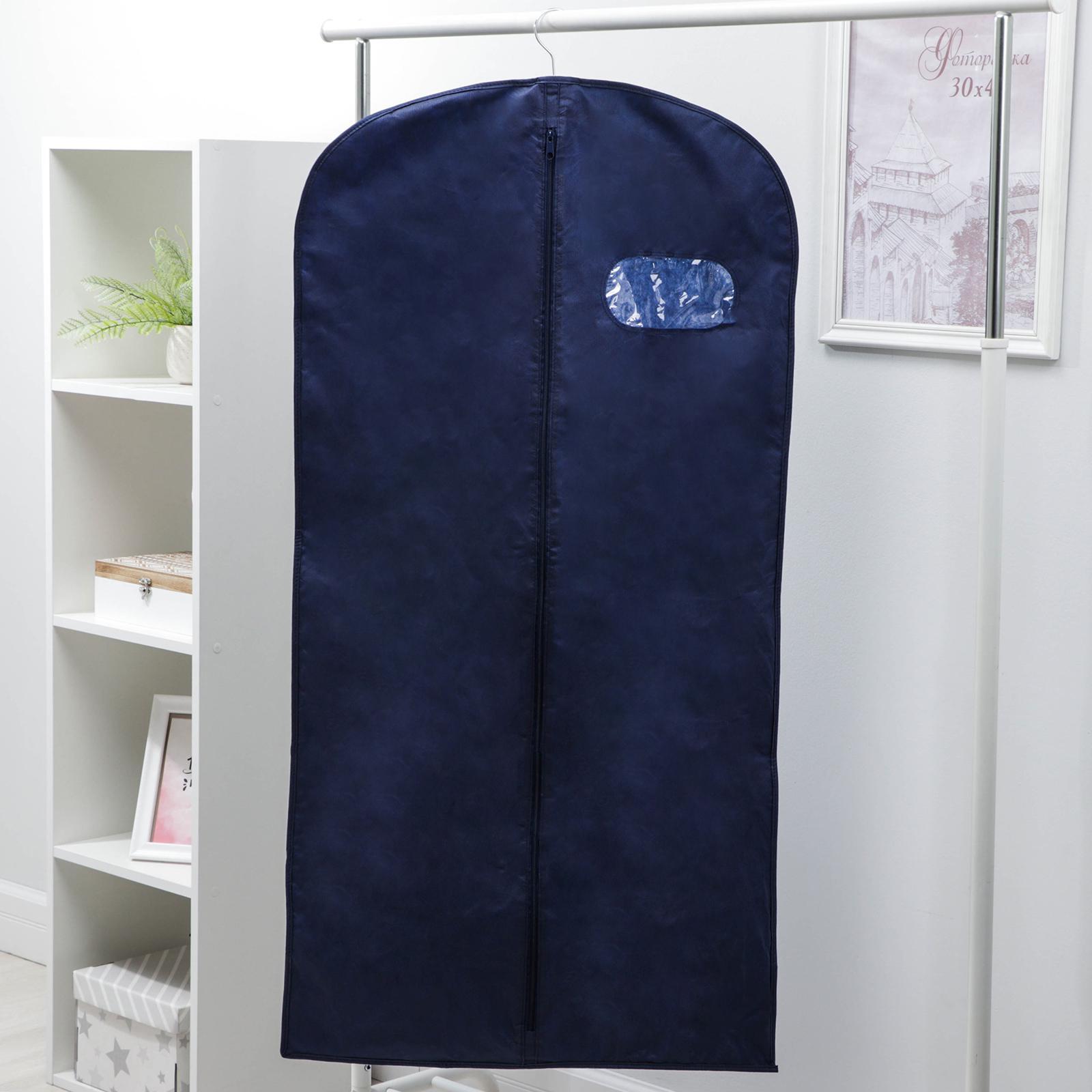 Чехол для одежды с окном, 60x120 см, спанбонд, цвет синий