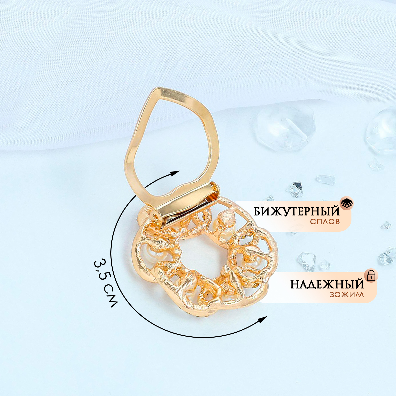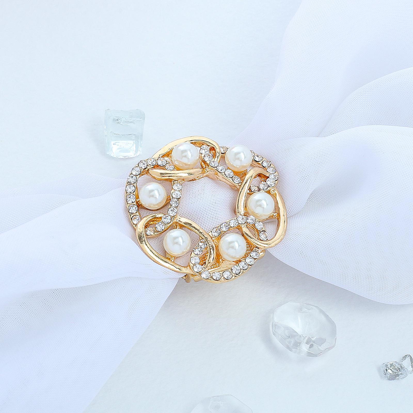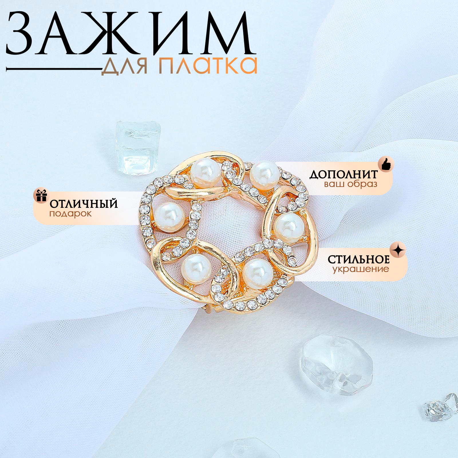 Зажим для платка «звенья» с жемчужиной, белый в золоте