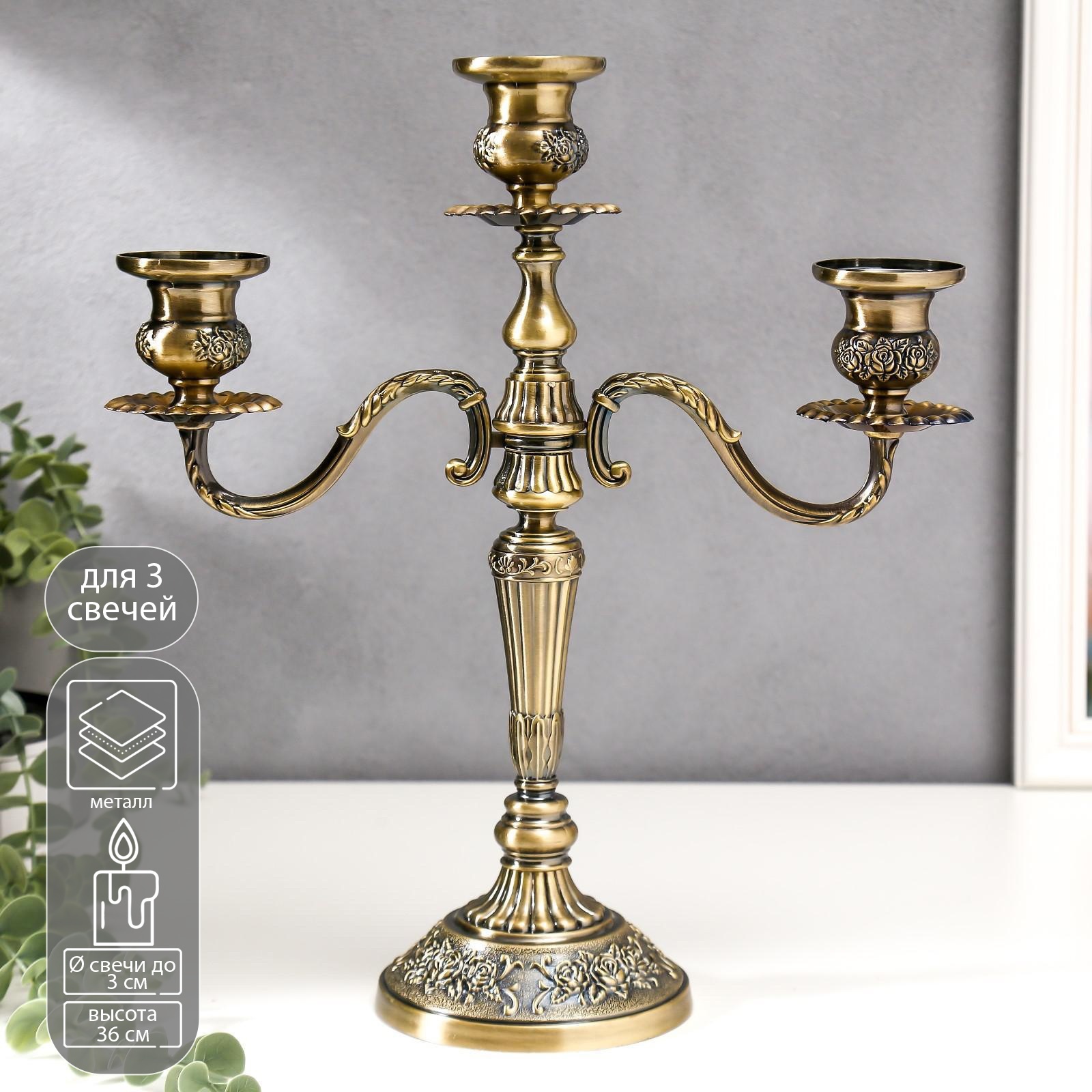 Металлический подсвечник на 3 свечи «канделябр. рим», под латунь, 36 32 12.5 см