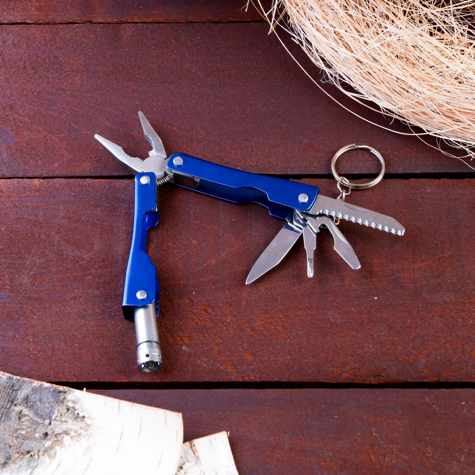 Мультитул 6в1 с фонариком, рукоять глянцевая,. Цвет: Синий Количество функций: 6 Материал: Пластик Материал: Металл Наличие чехла: Да Вид брелока: Инструмент  развернуть описание ▼