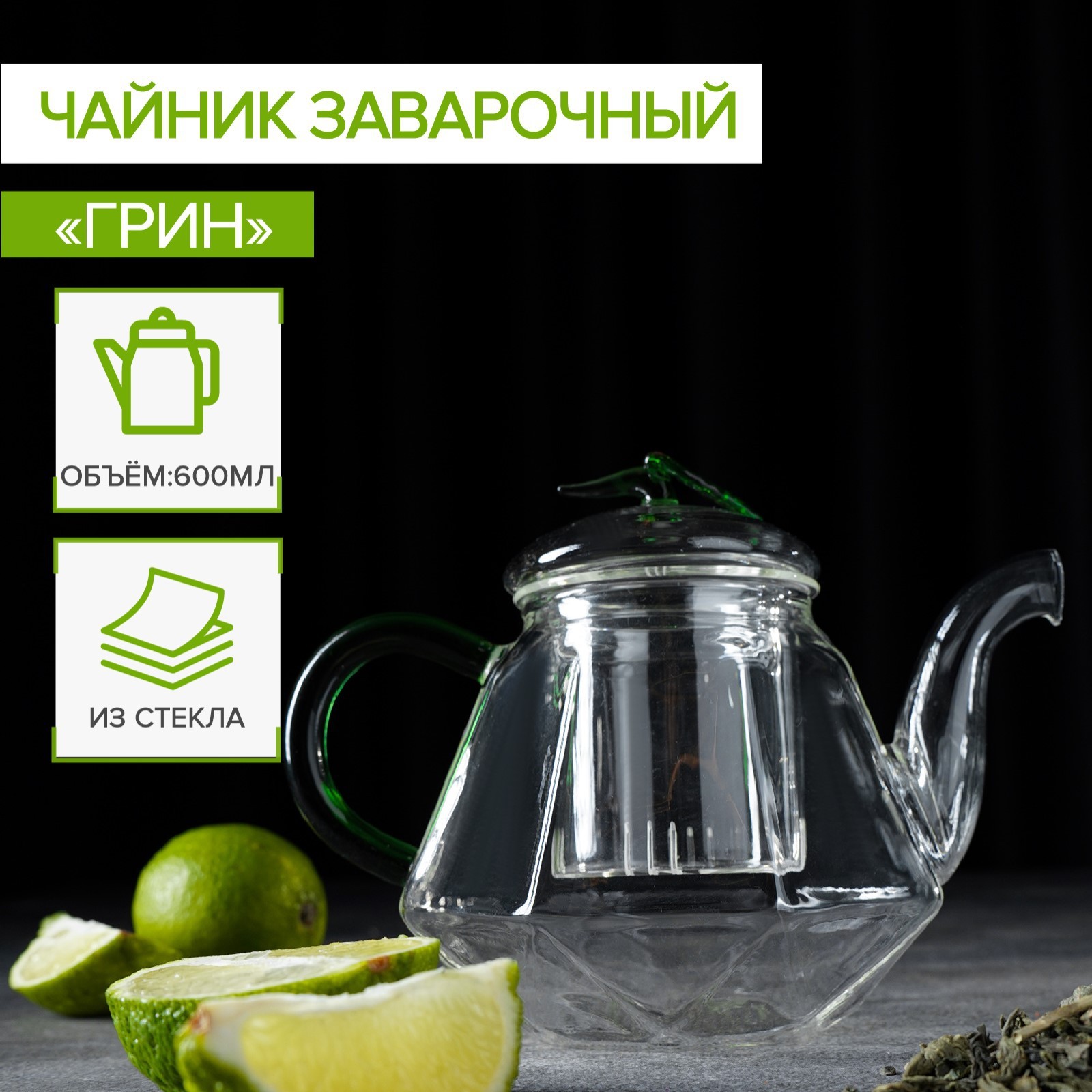 Чайник заварочный со стеклянным ситом «грин», 600 мл