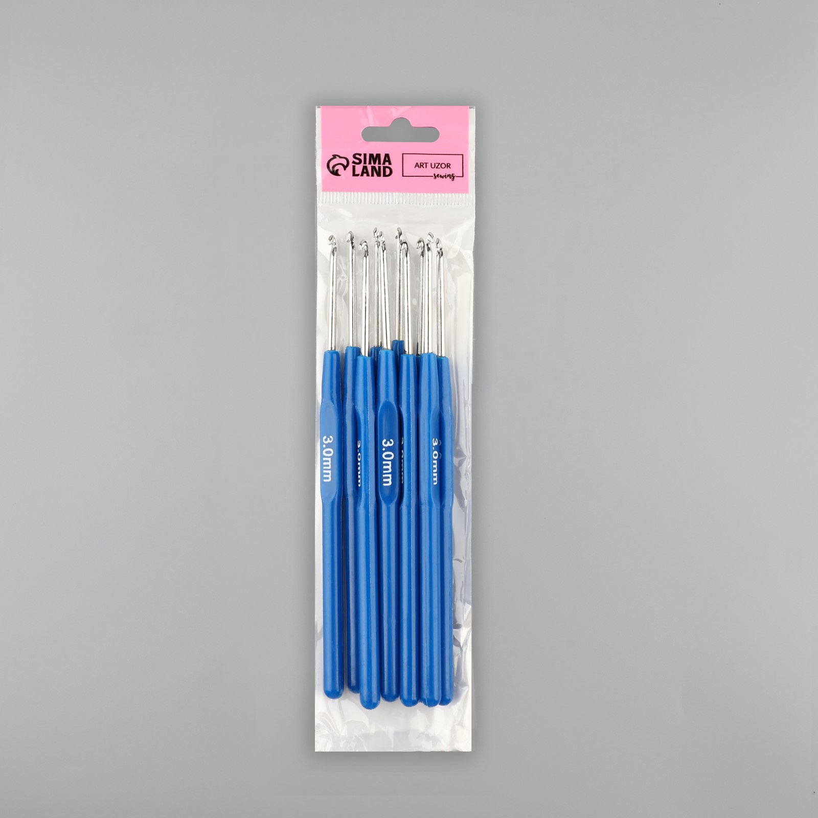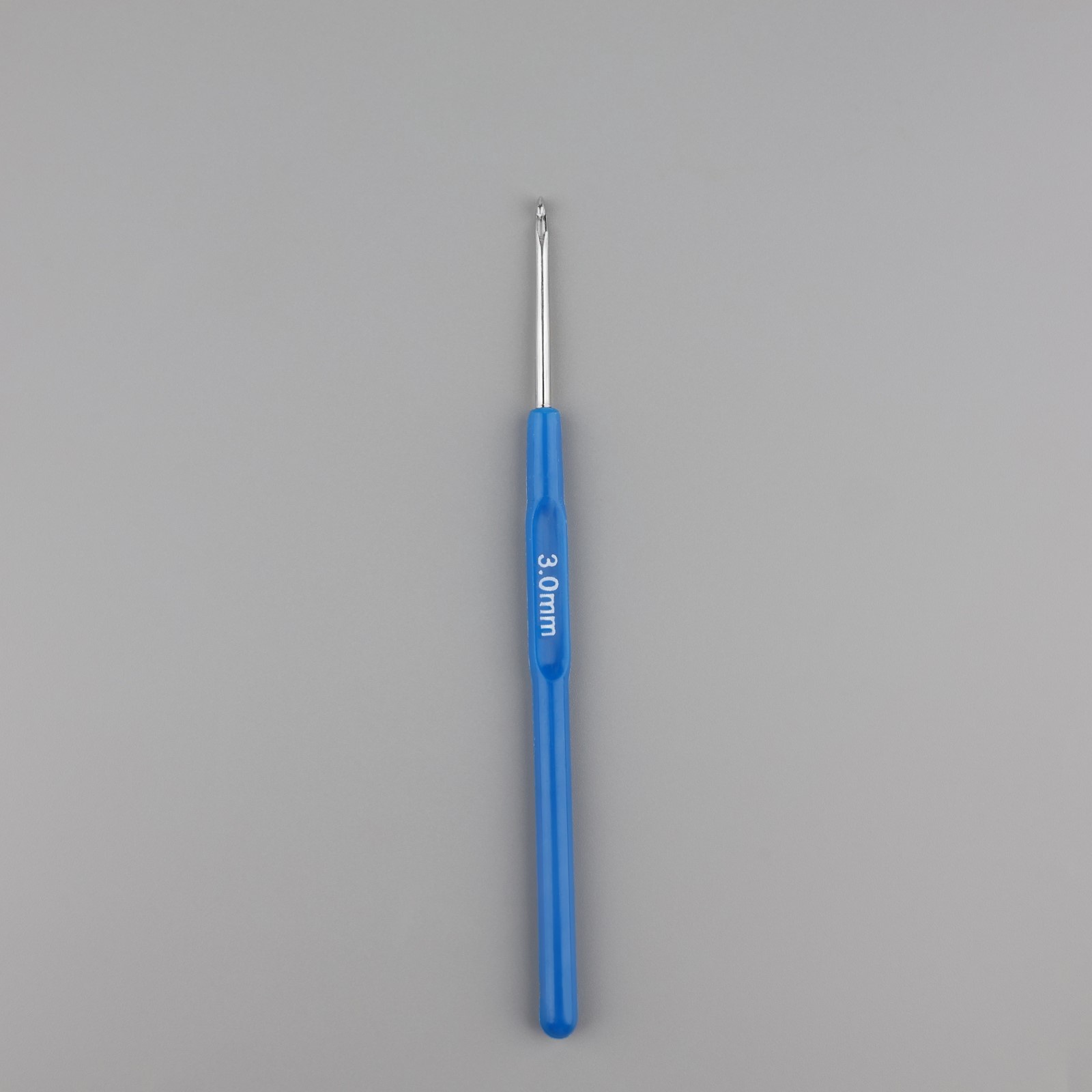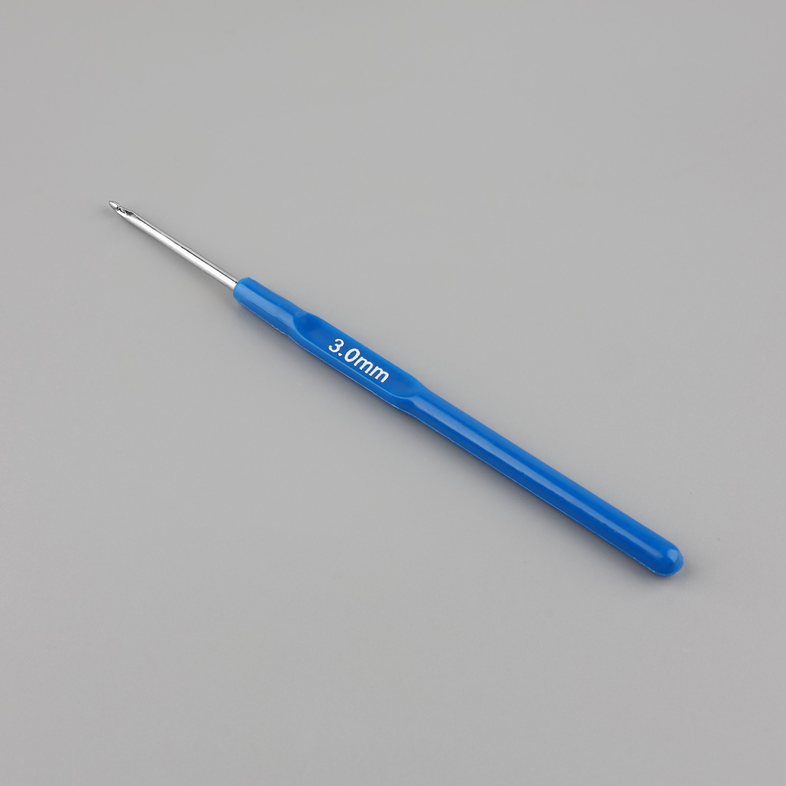 Крючок для вязания, с пластиковой ручкой, D=3 мм, 13.5 см, синий