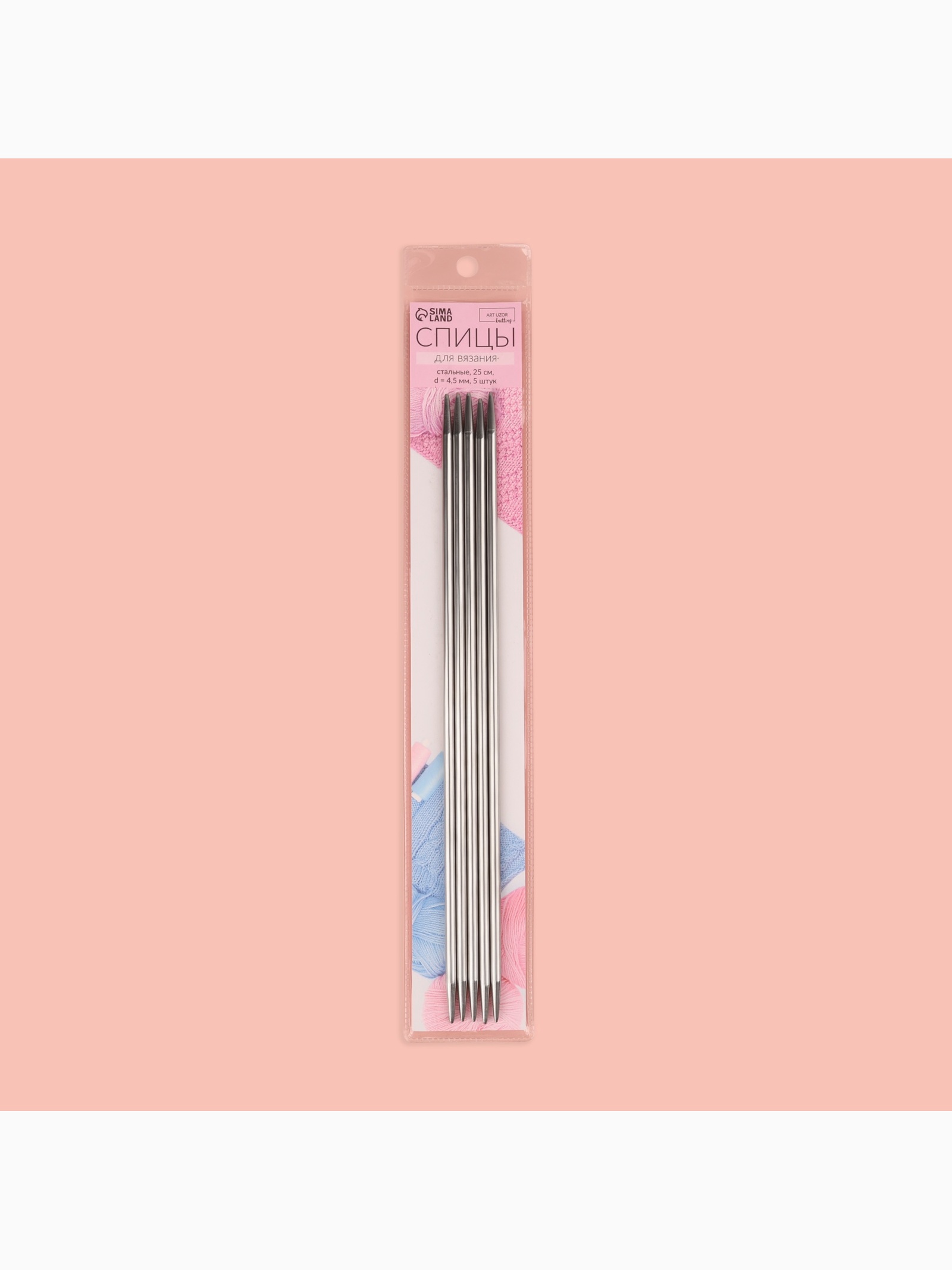 Спицы для вязания, чулочные, D=4.5 мм, 25 см, 5 шт.