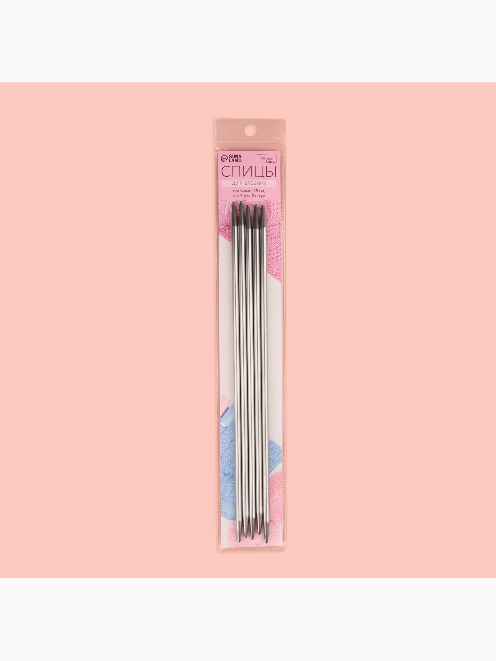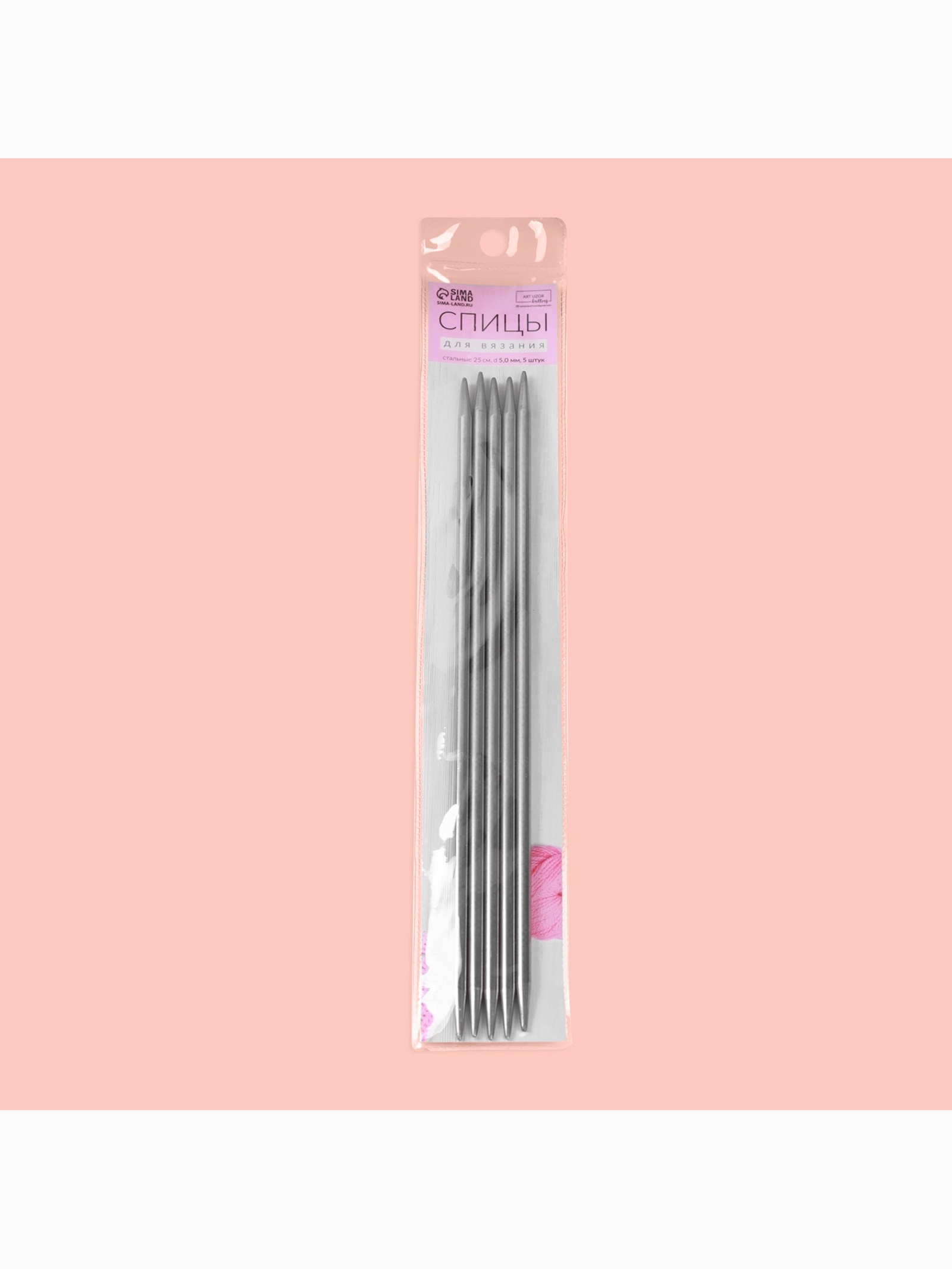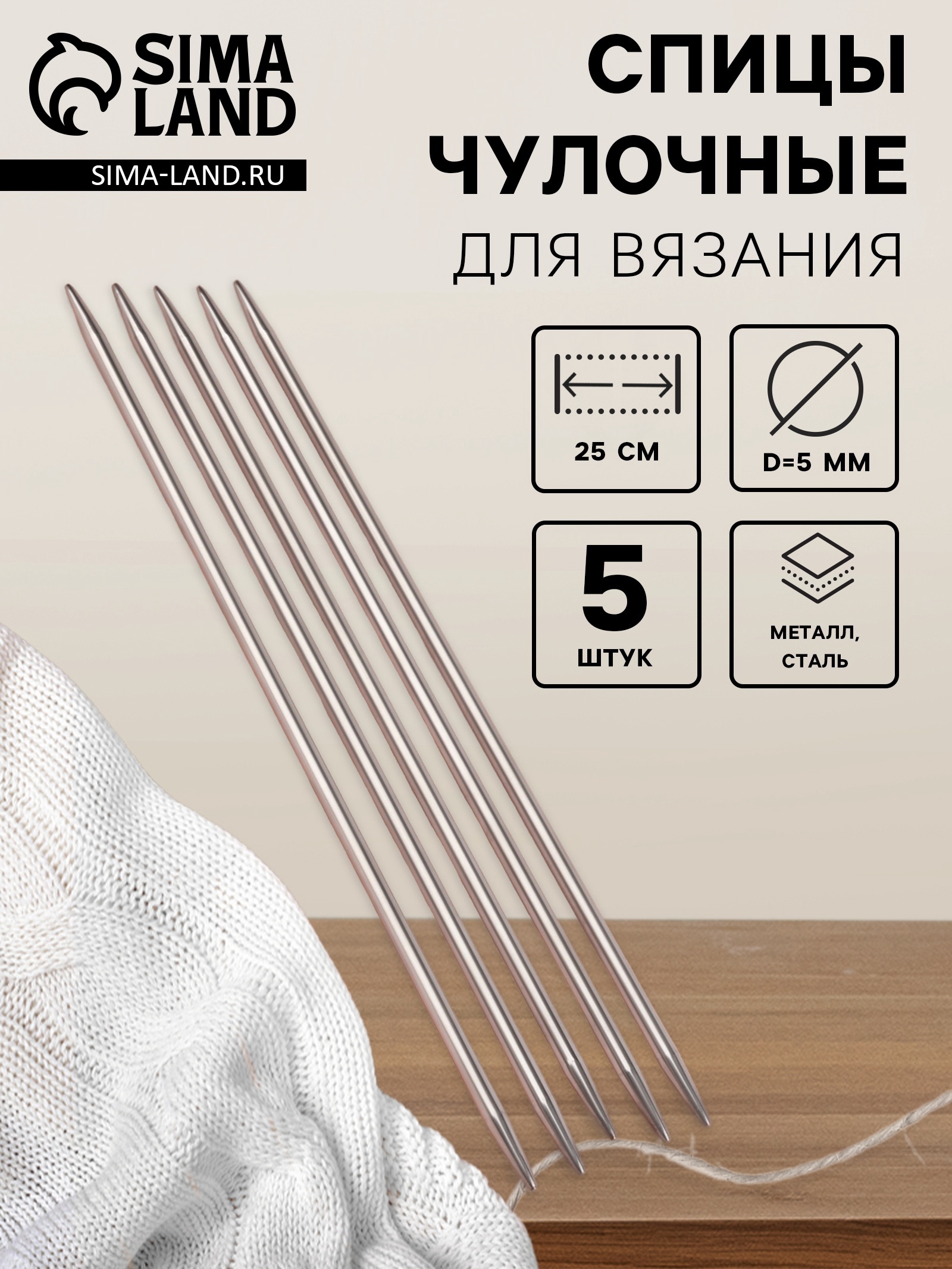 Спицы для вязания, чулочные, D=5 мм, 25 см, 5 шт.