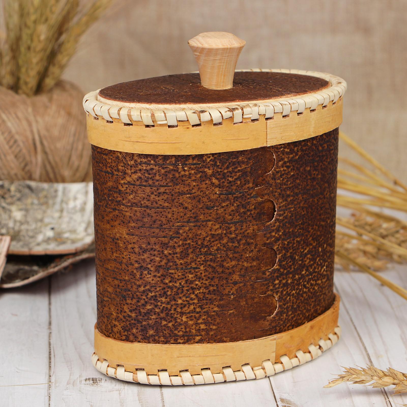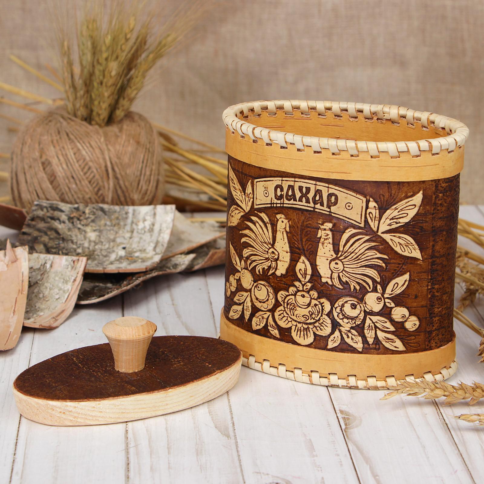 Туес для специй «птицы», сахар, 15х9х14 см, береста