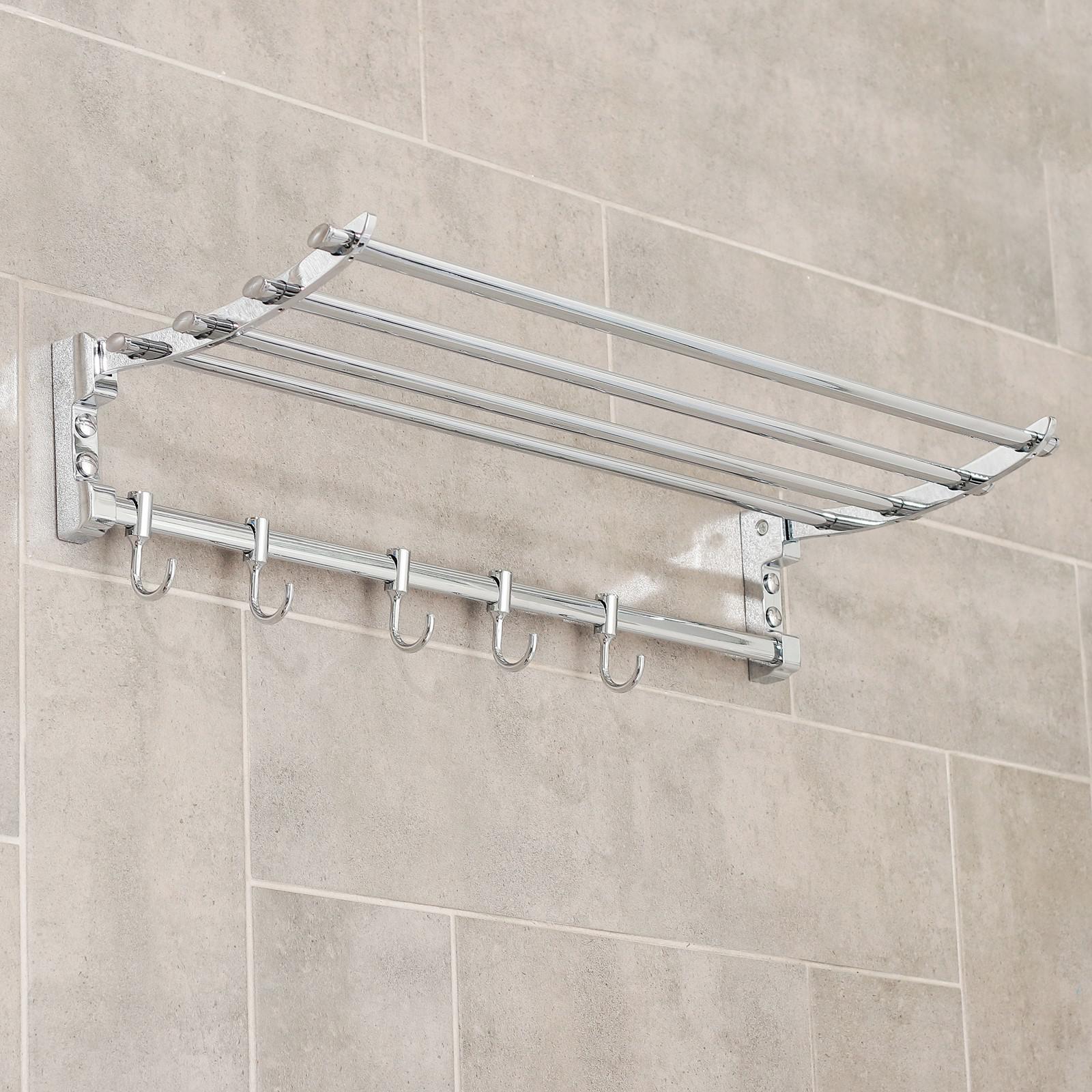 Полка откидная с двигающимися крючками Accoona A141, 57x30 см, цвет хром