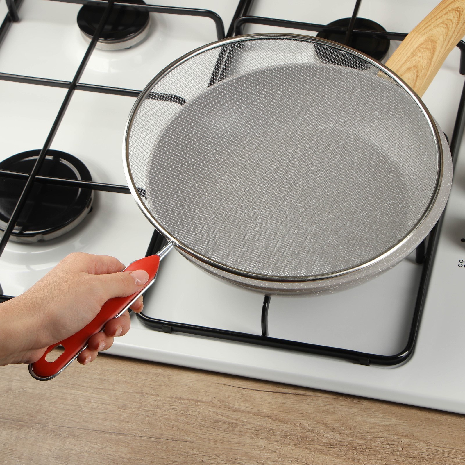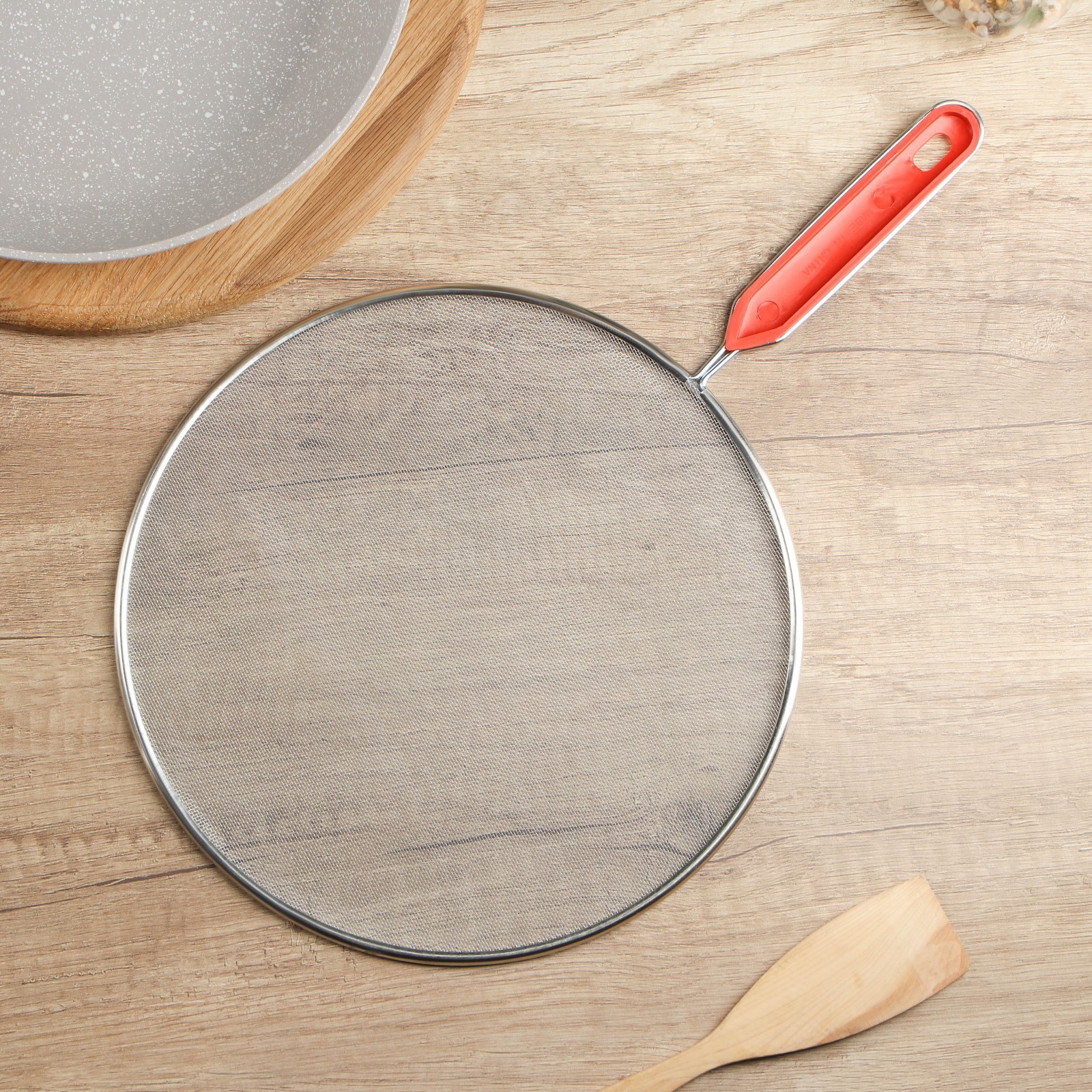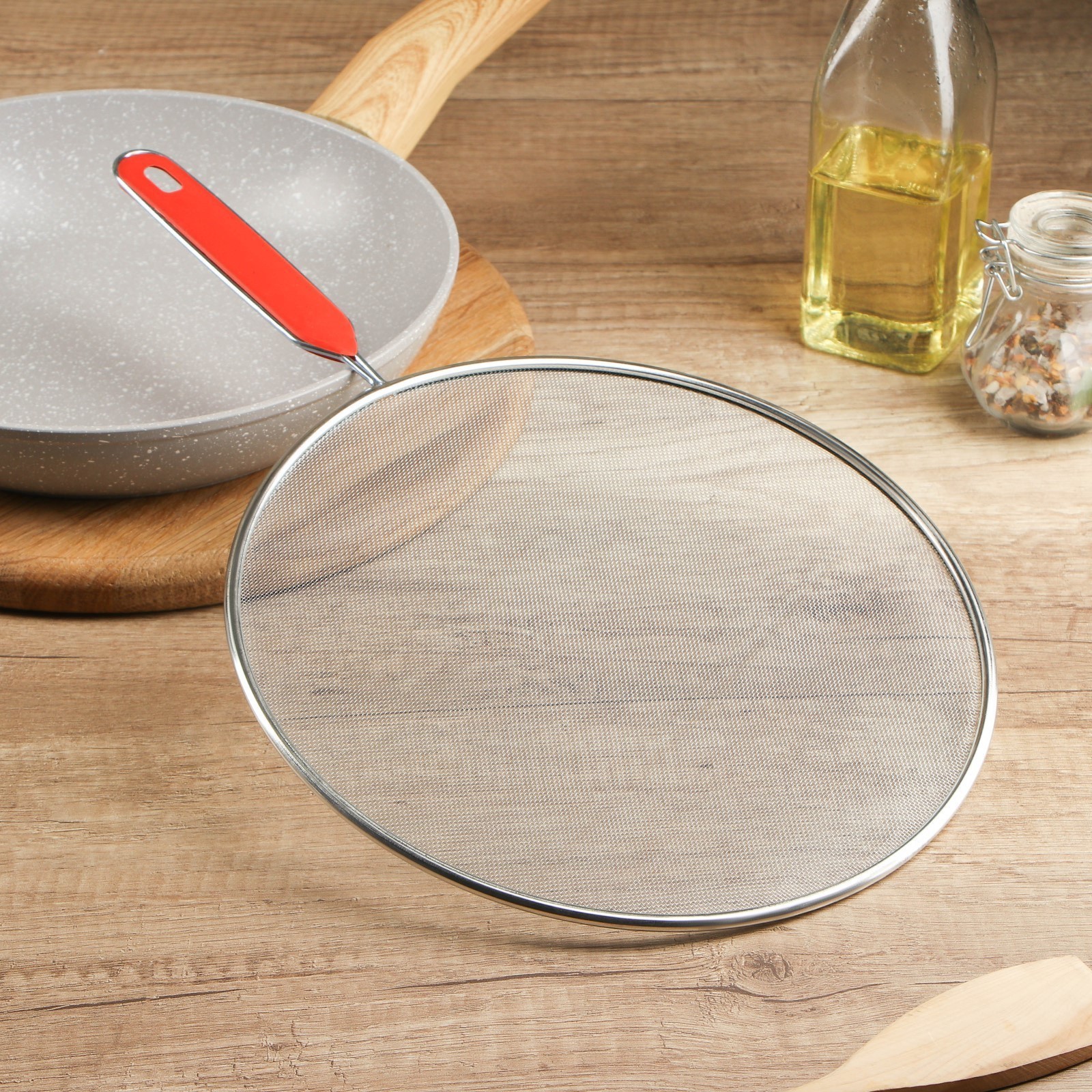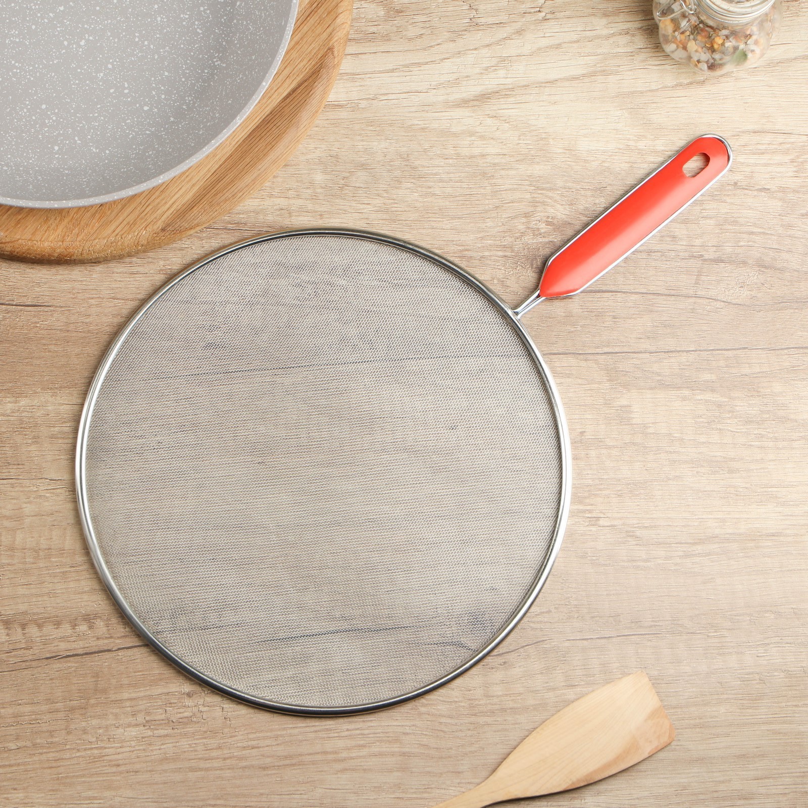 Экран от брызг доляна, d=24,5 см, с ручкой. Экран от брызг – простое и эффективное приспособление, которое спасет вас от разбрызгивания масла и жира при жарке в открытой сковороде. В отличие от обычной крышки сетка экран отлично пропускает воздух, а значит, обеспечивает полноценный режим жарки. Любителям хрустящих корочек это, безусловно, придется по вкусу. Готовьте стейки, отбивные, жареную картошку и другие вкуснейшие блюда без утомительной уборки кухни с крышками-экранами от брызг ! Цвет: Серый Диаметр, см: 24.5 Материал: Нержавеющая сталь Можно мыть в посудомоечной машине: Нет  развернуть описание ▼