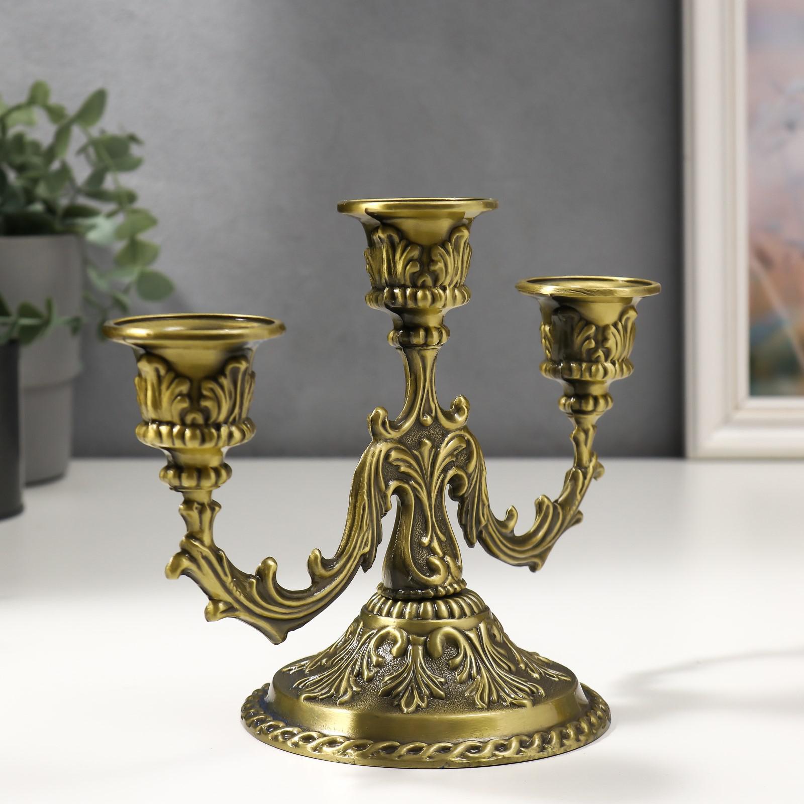 Металлический подсвечник на 3 свечи «канделябр. узоры природы», под латунь, 20 14 10 см