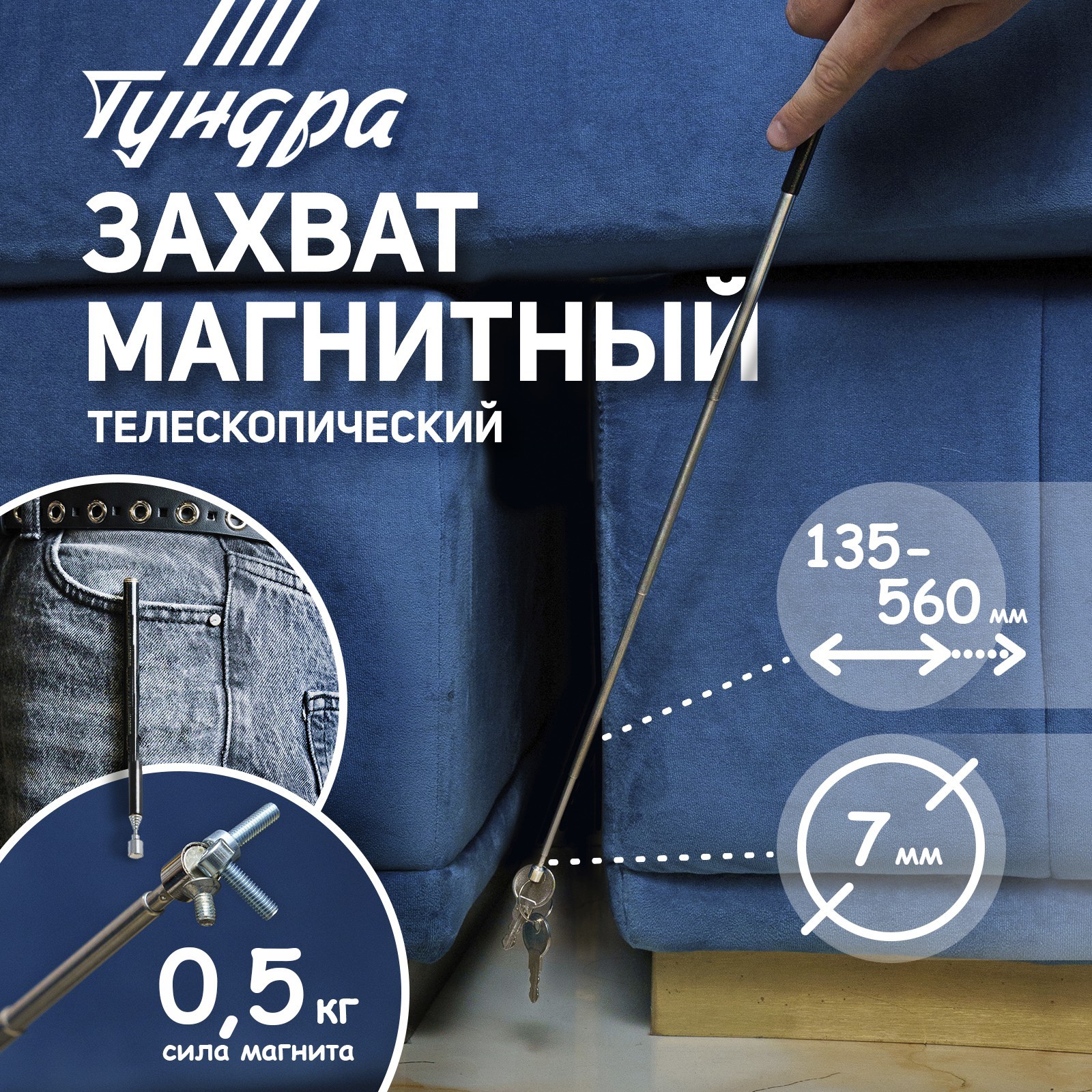 Магнит телескопический тундра, диаметр 7 мм, 135 - 560 мм, до 0.5 кг