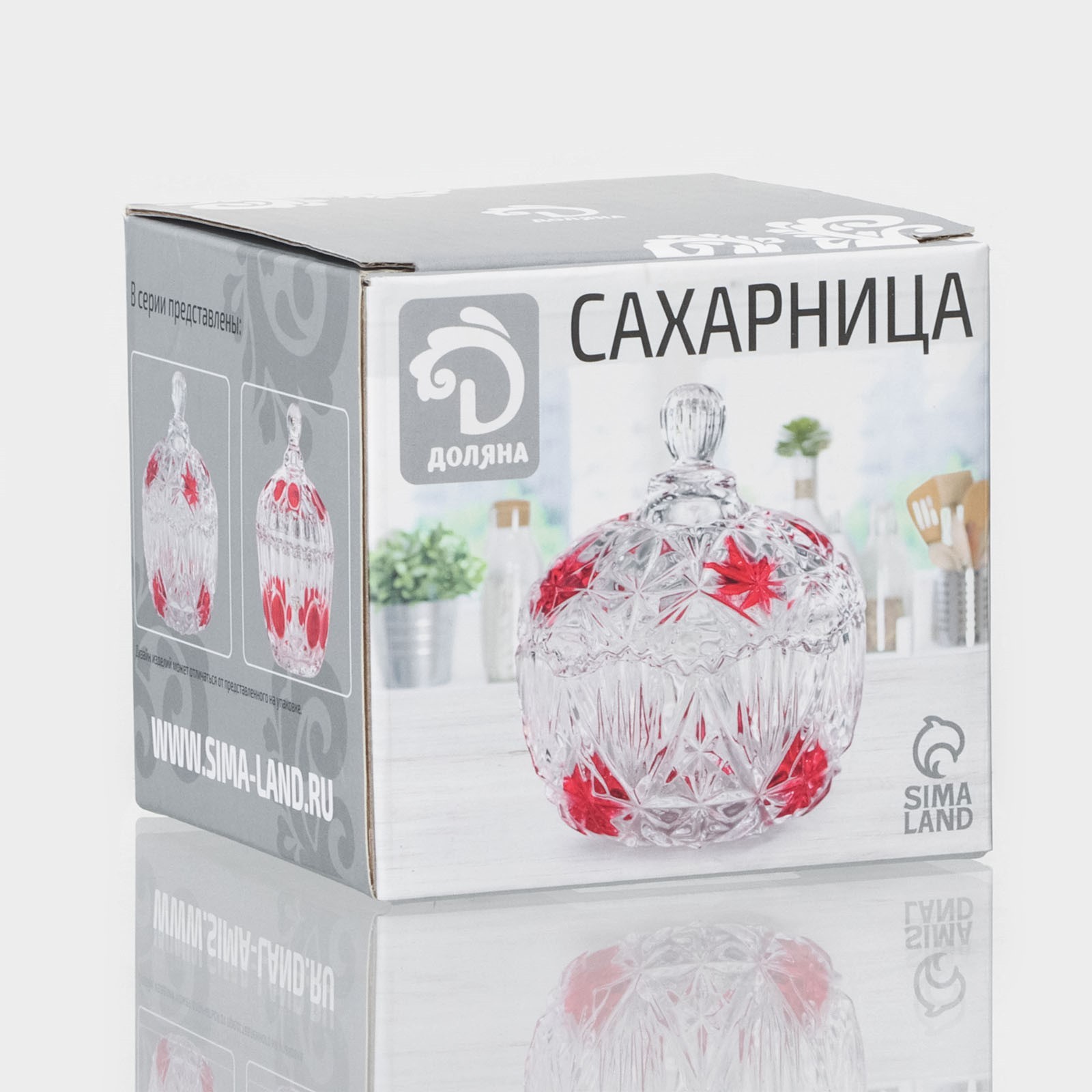 Сахарница стеклянная доляна «венеция листва», 300 мл, 10x12,5 см, с крышкой